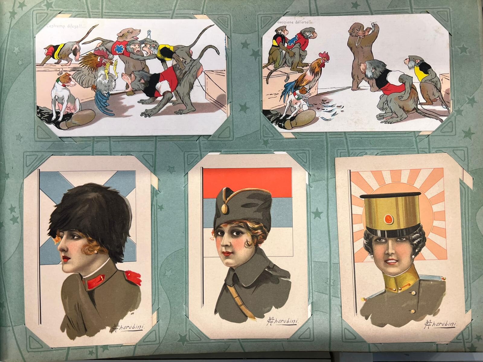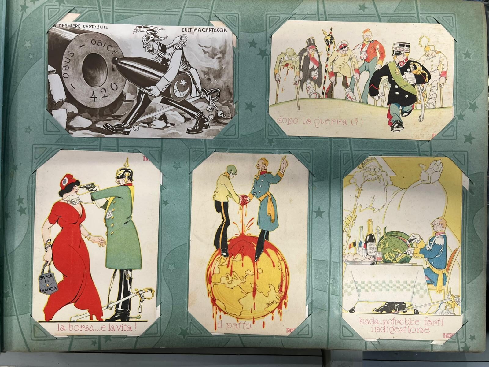 ALBUM CON N° 231 CARTOLINE SATIRICHE PRIMA GUERRA MONDIALE