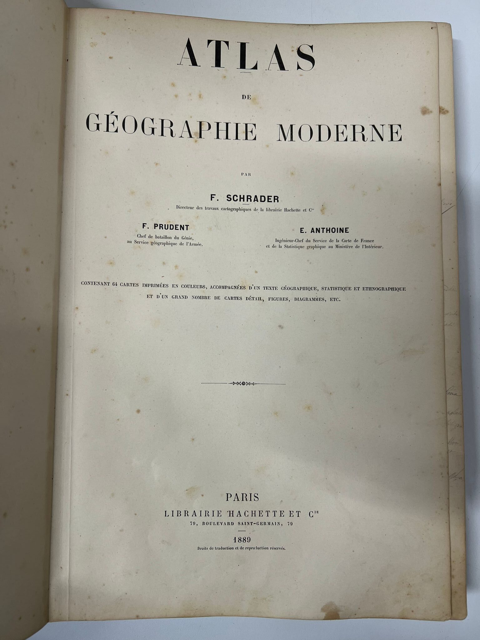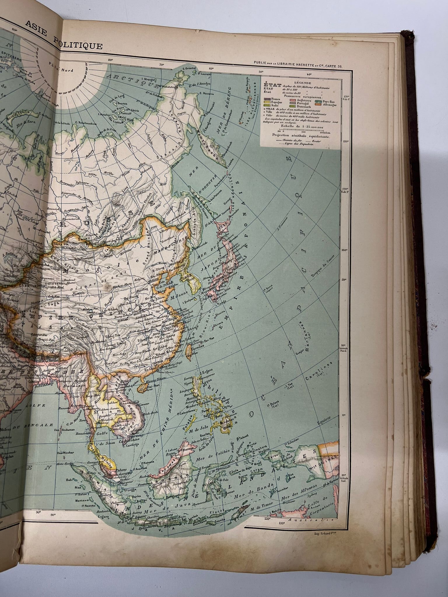 ANTICO ATLANTE GEOGRAFICO FRANCESE HACHETTE 1889 ATLAS