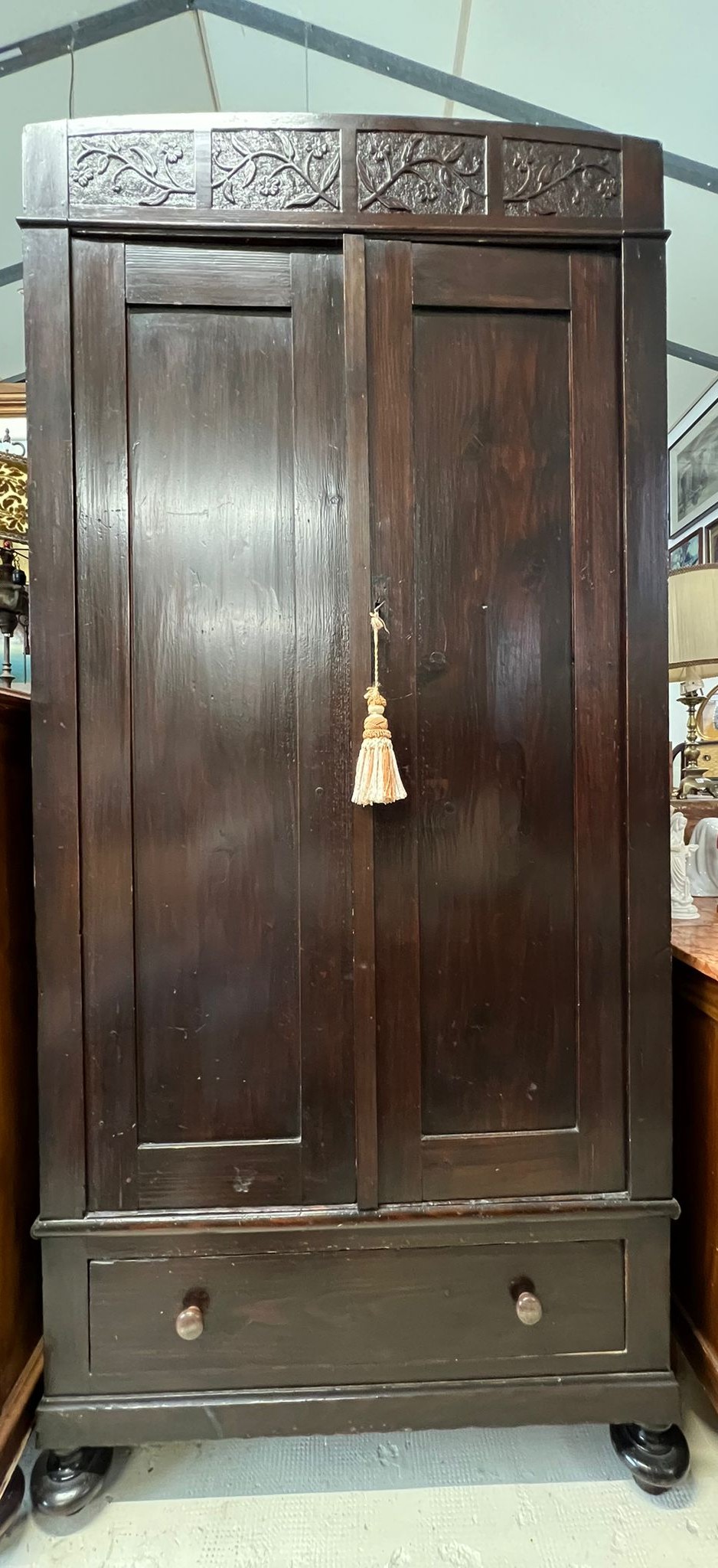 ARMADIO IN LEGNO SCURO A 2 ANTE CON CASSETTO,