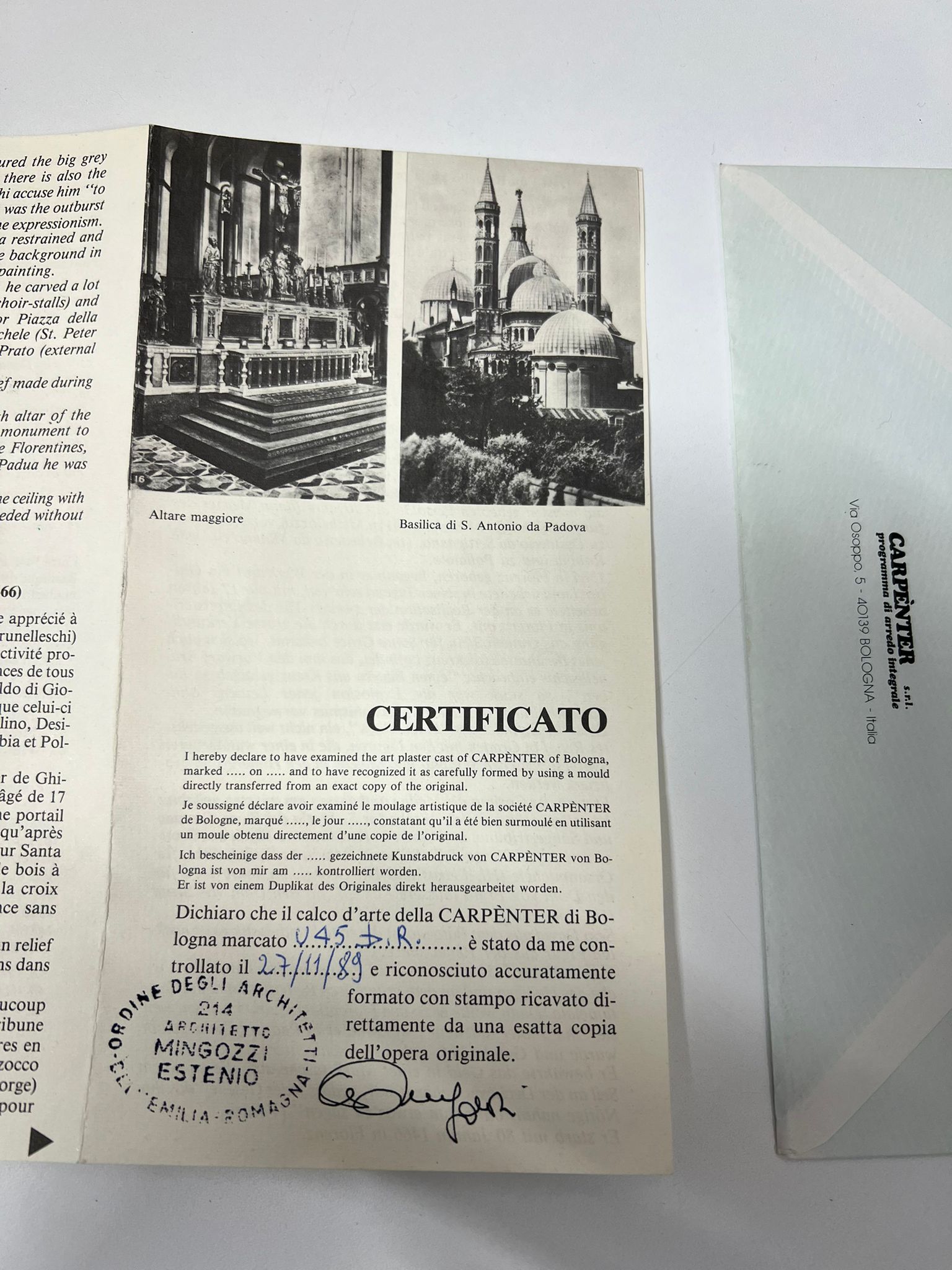 CALCO D’ARTE ANGIOLETTO CARPENTER BOLOGNA- DONATELLO DALLA CHIESA DEL SANTO DI PADOVA.