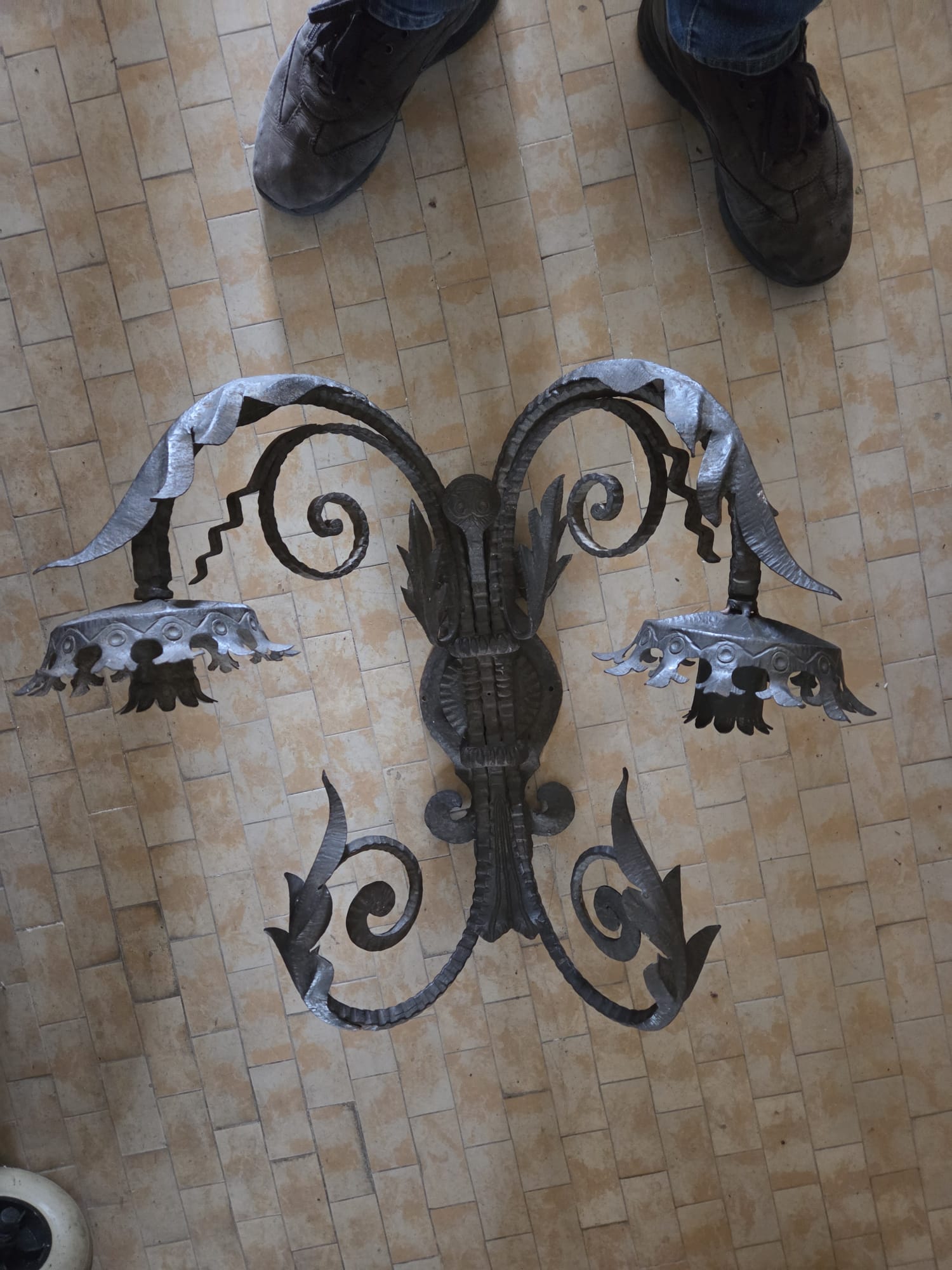 CANDELABRO DA PARETE ANTICO IN FERRO BATTUTO
