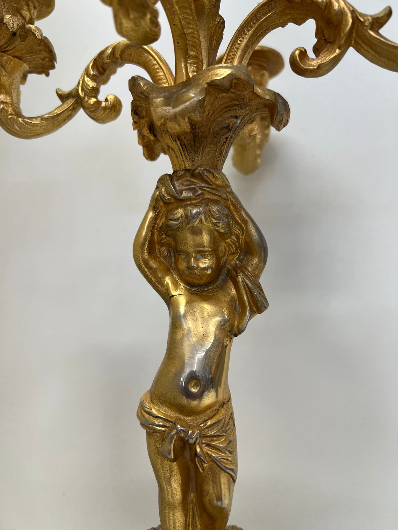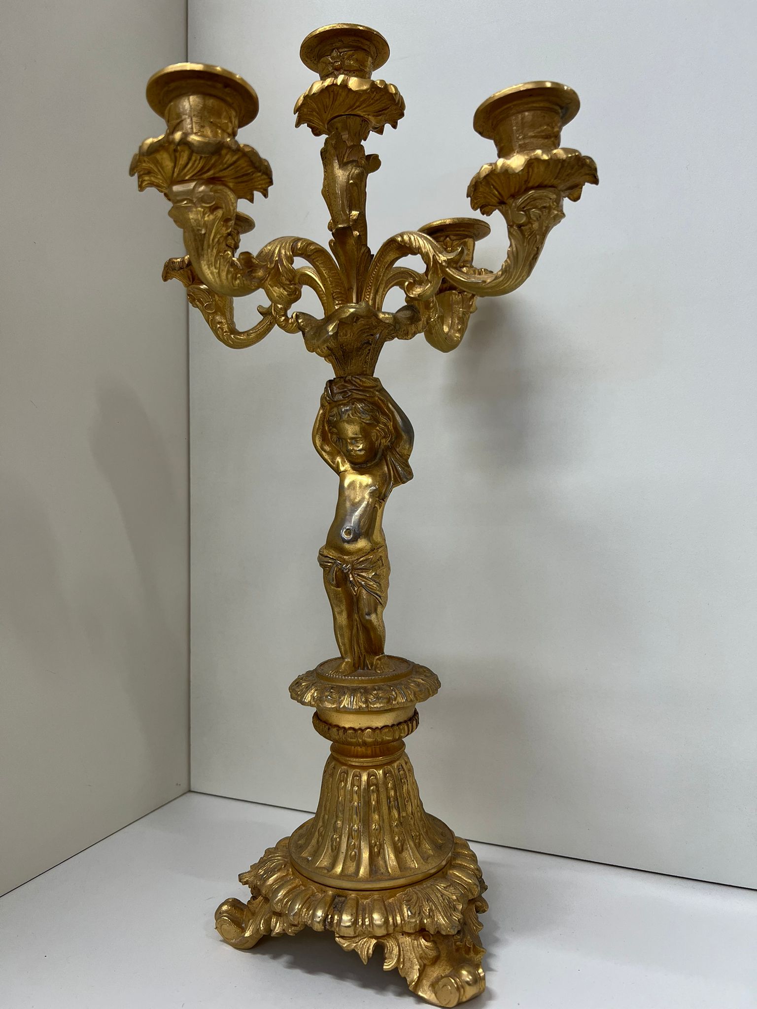 CANDELABRO IN FERRO DORATO CON PUTTO