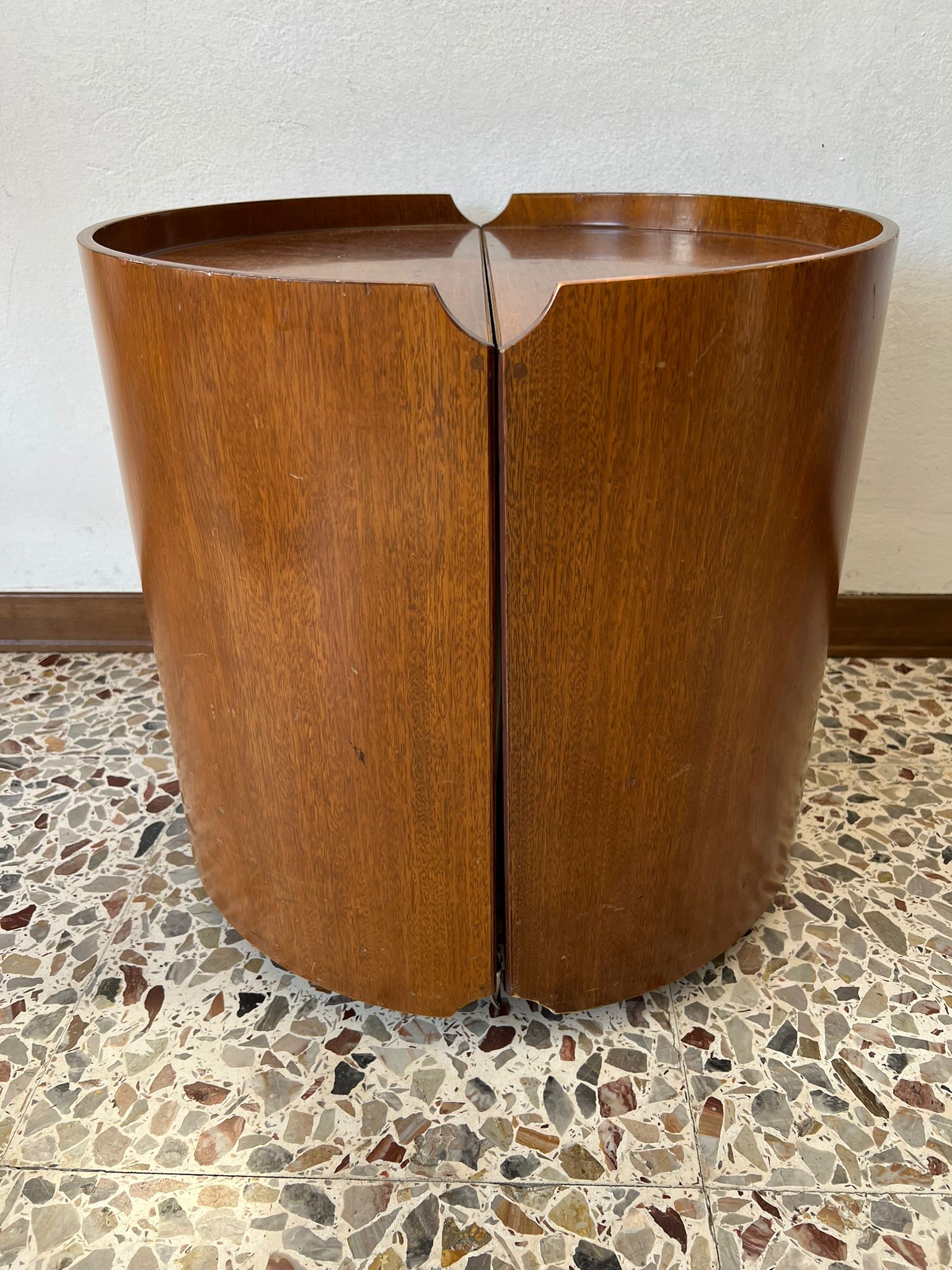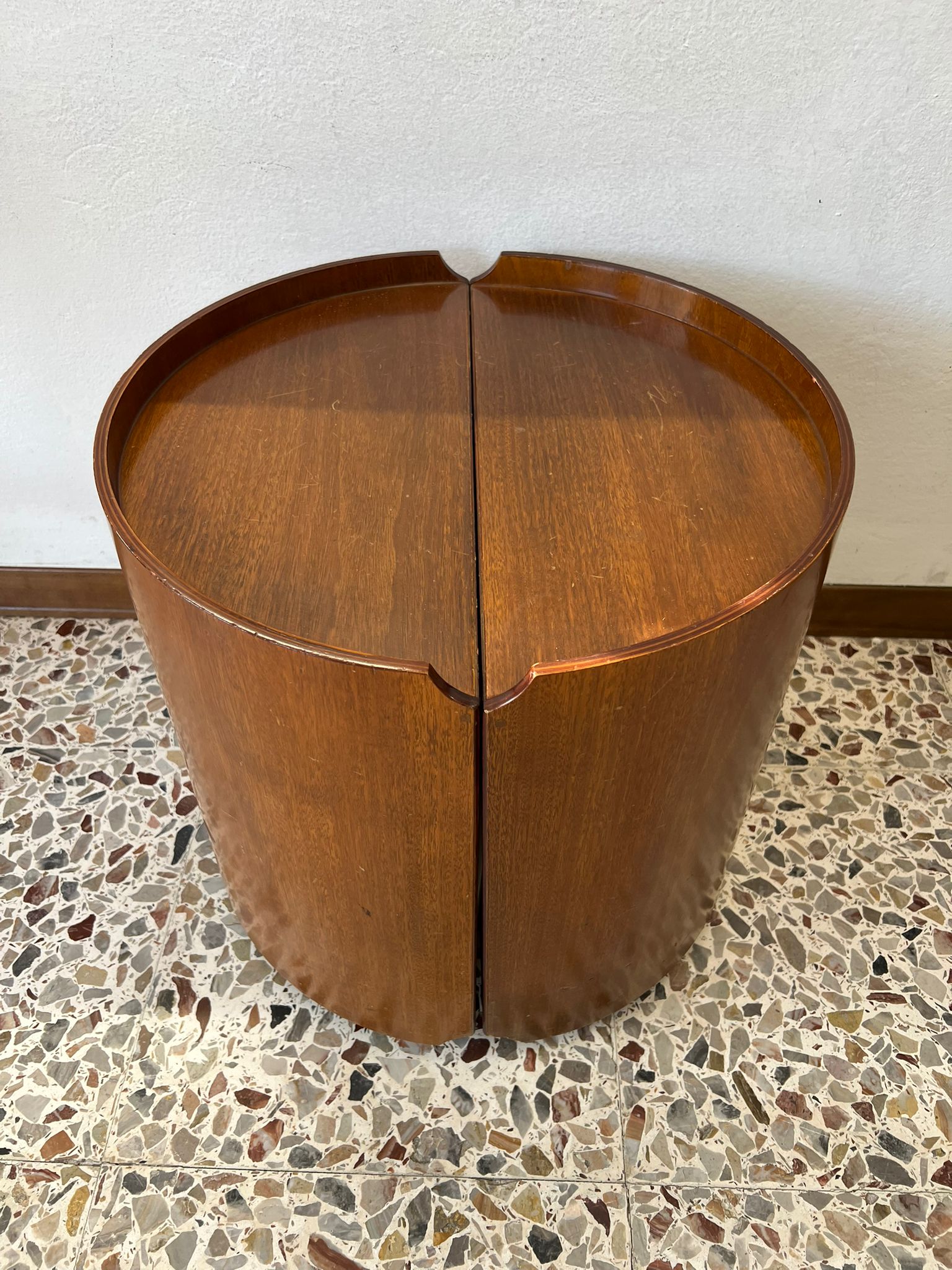 Questo elegante tavolo da bar apribile incarna l’essenza del design italiano degli anni ’60, frutto della collaborazione dei più celebri designer italiani dell’epoca. Caratterizzato da linee sinuose e materiali pregiati, rappresenta un perfetto connubio tra funzionalità e raffinatezza estetica. Il tavolo è dotato di un meccanismo di apertura che svela un vano interno ideale per riporre bottiglie e bicchieri, trasformandosi in un pratico mobile bar. Le misure contenute lo rendono adatto a diversi ambienti,