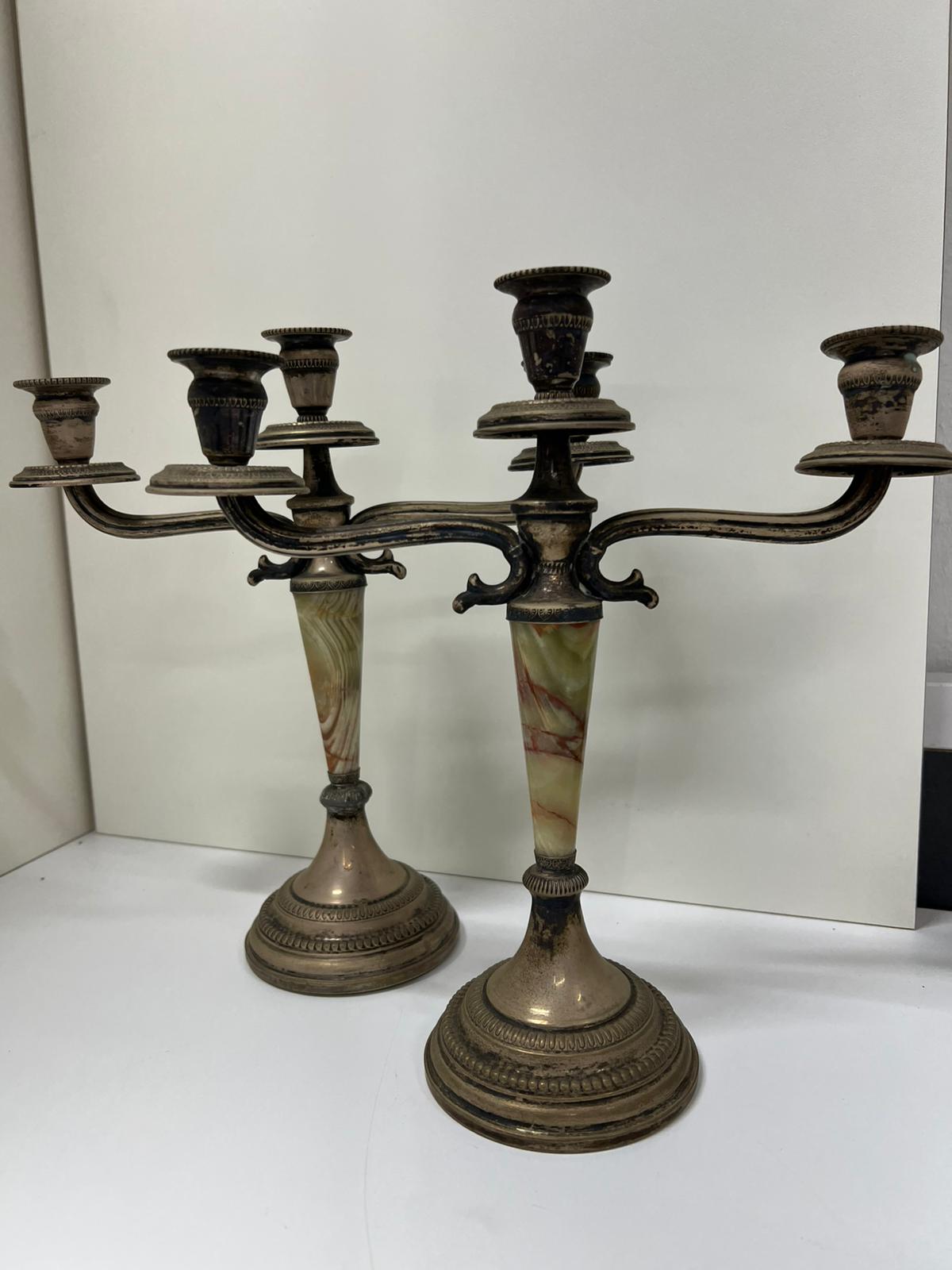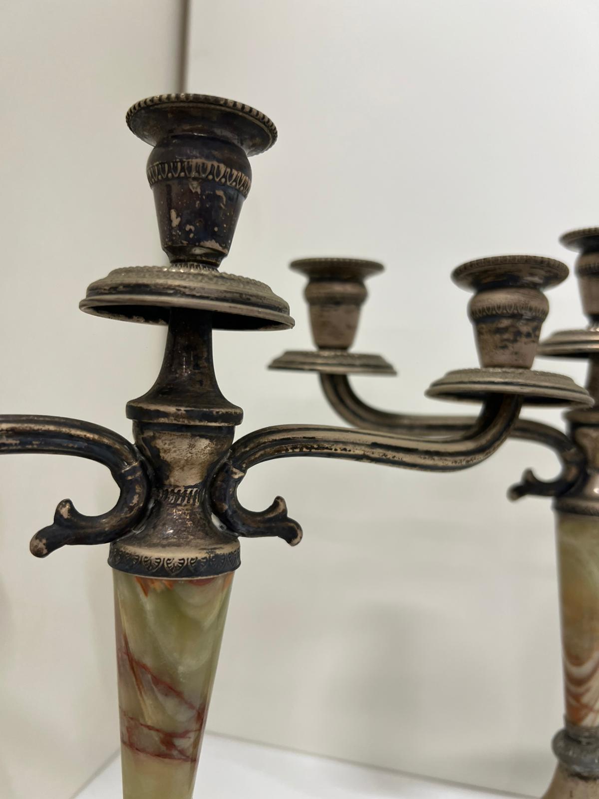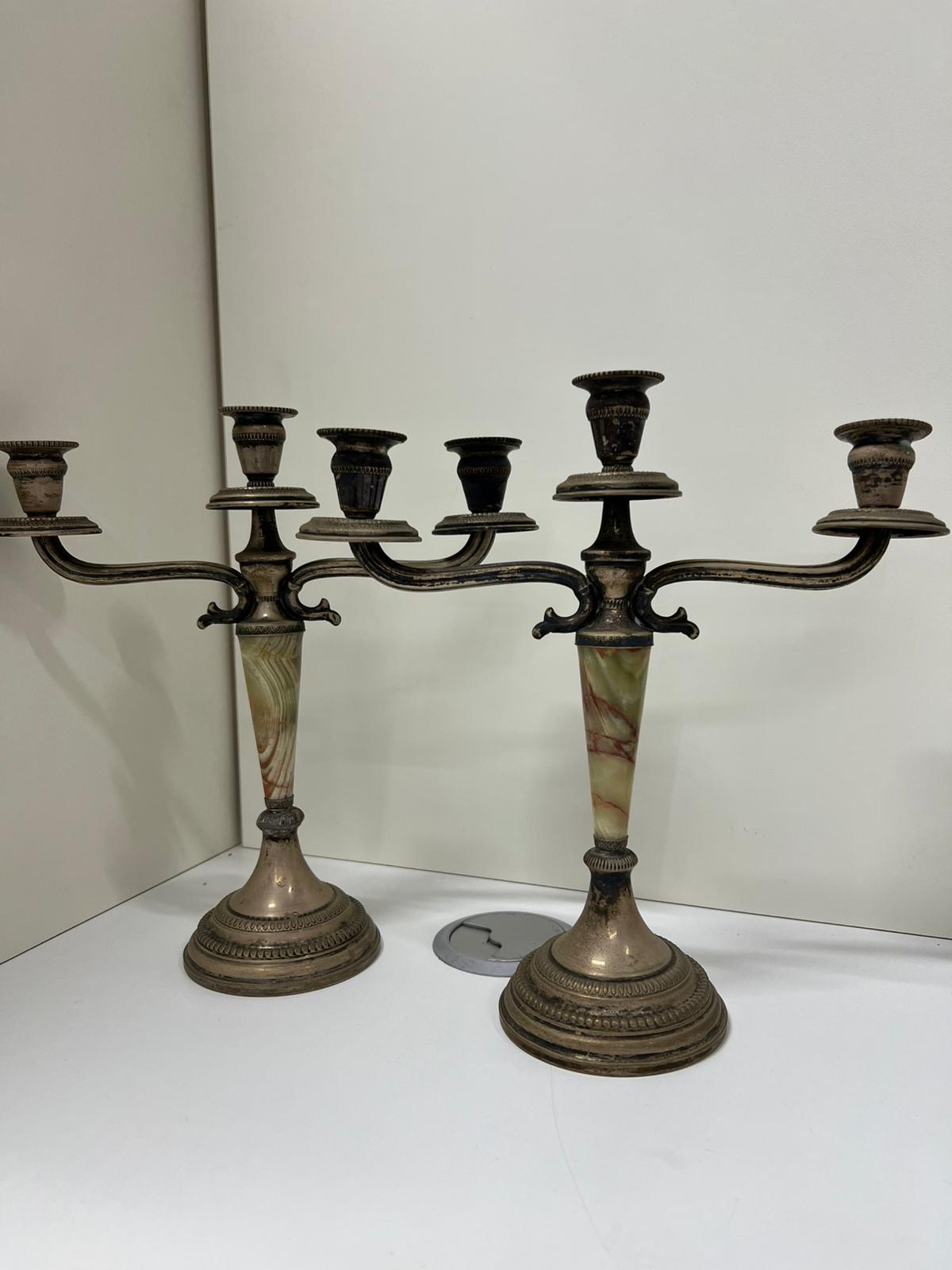 COPPIA CANDELIERI IN ARGENTO 800 E ONICE VERDE