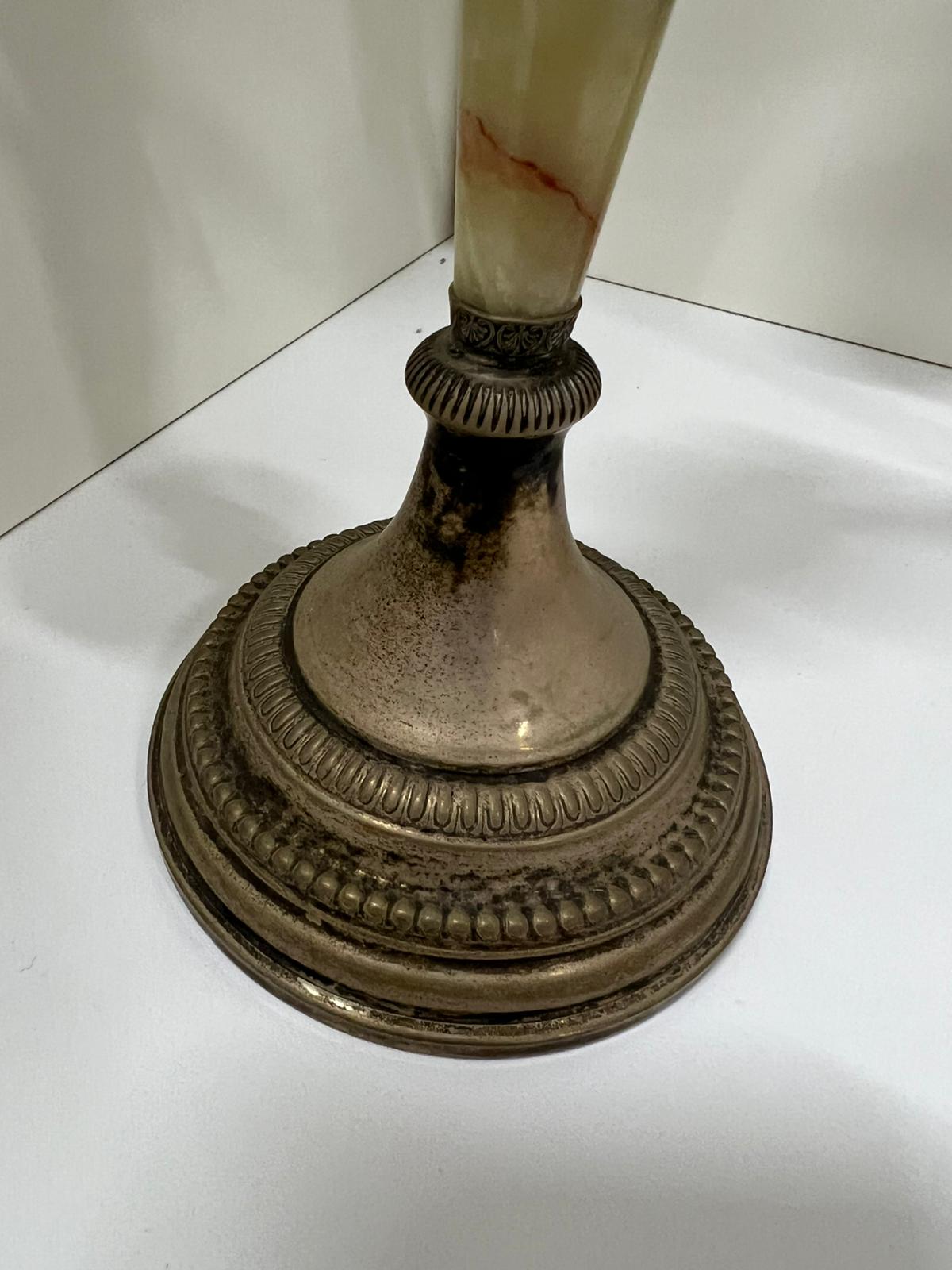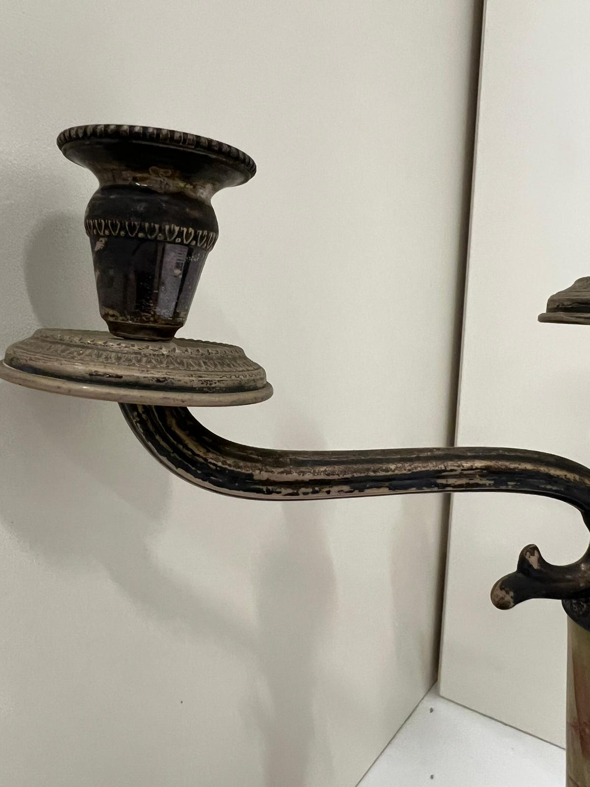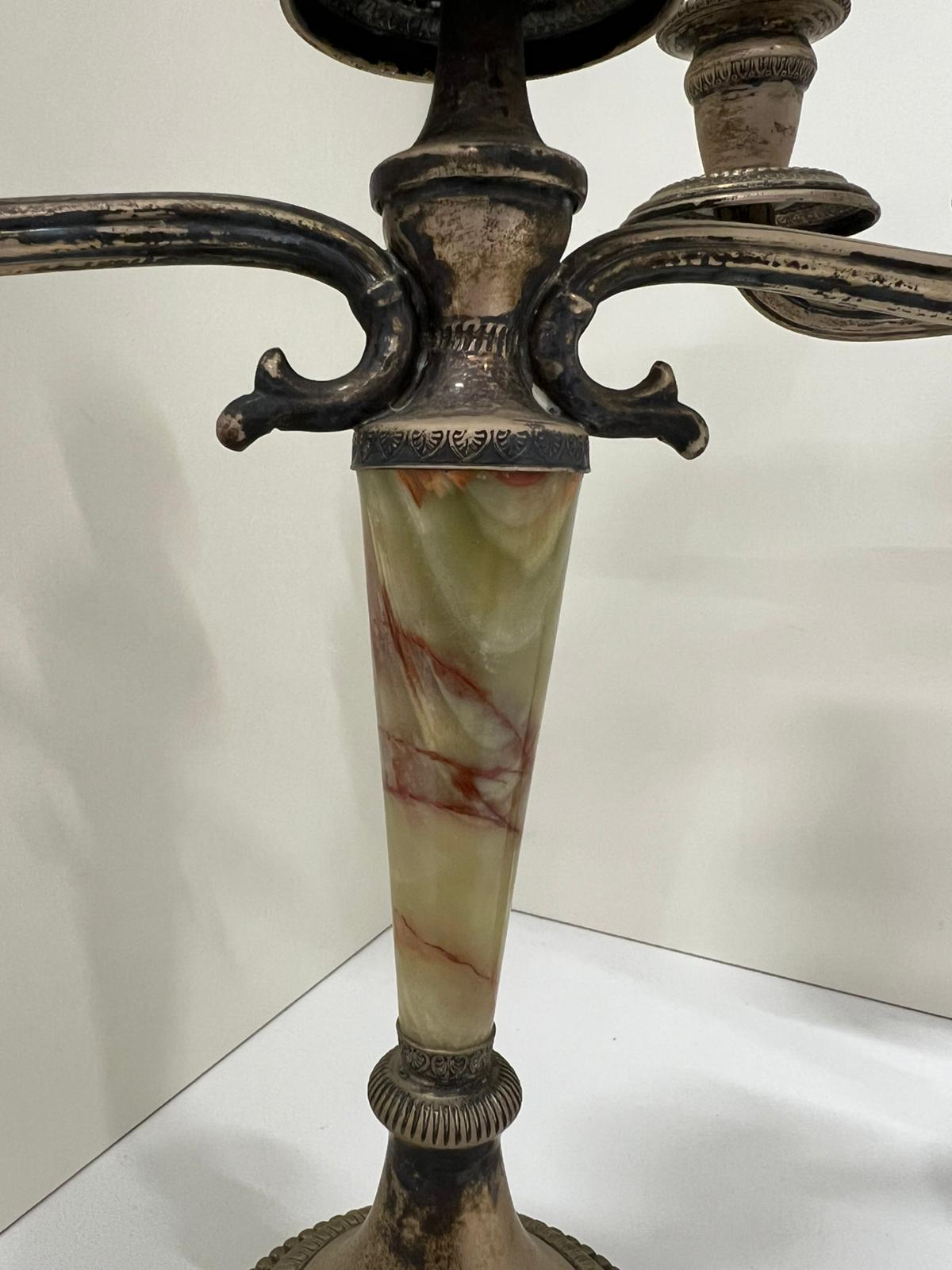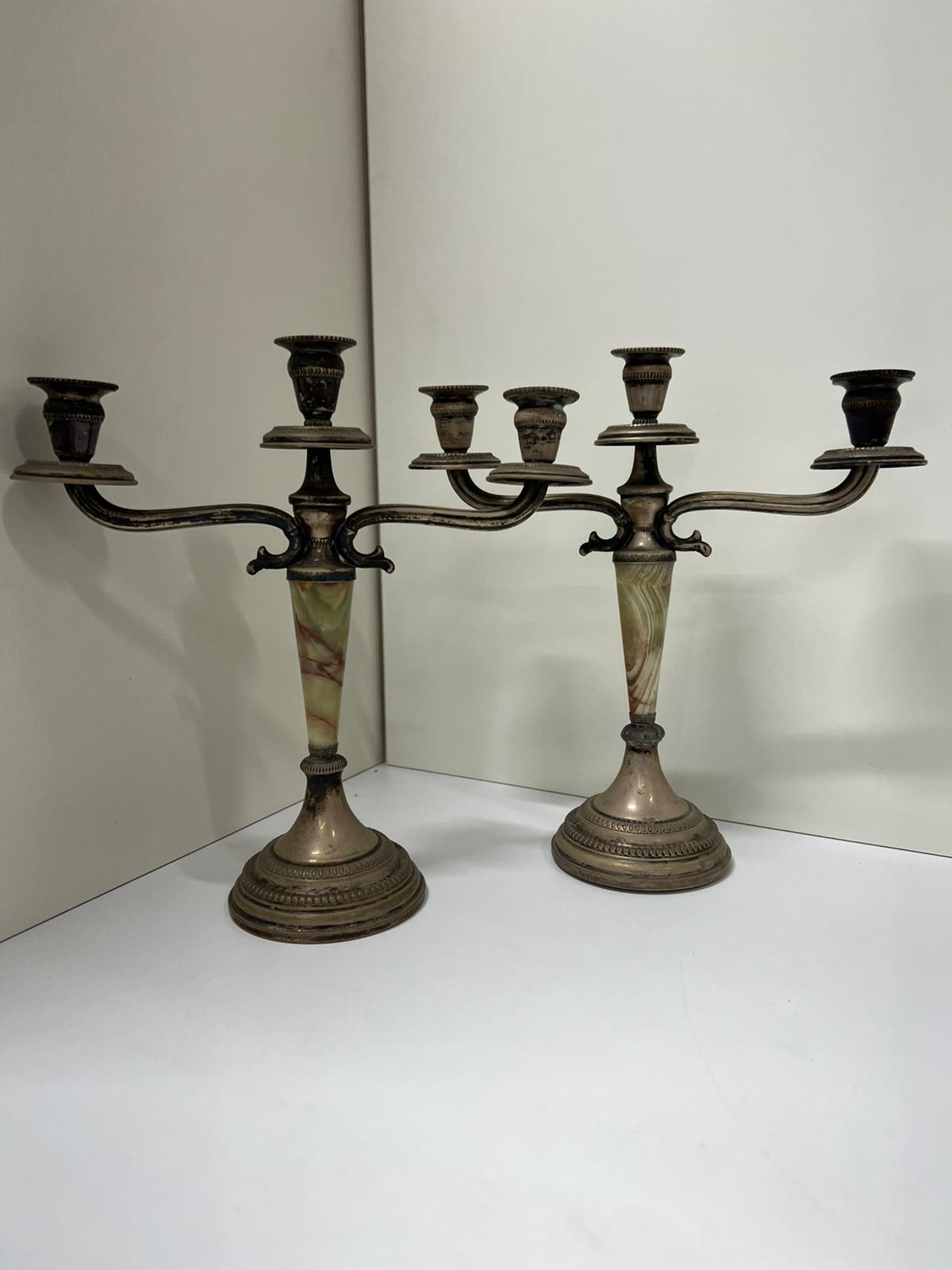 COPPIA CANDELIERI IN ARGENTO 800 E ONICE VERDE