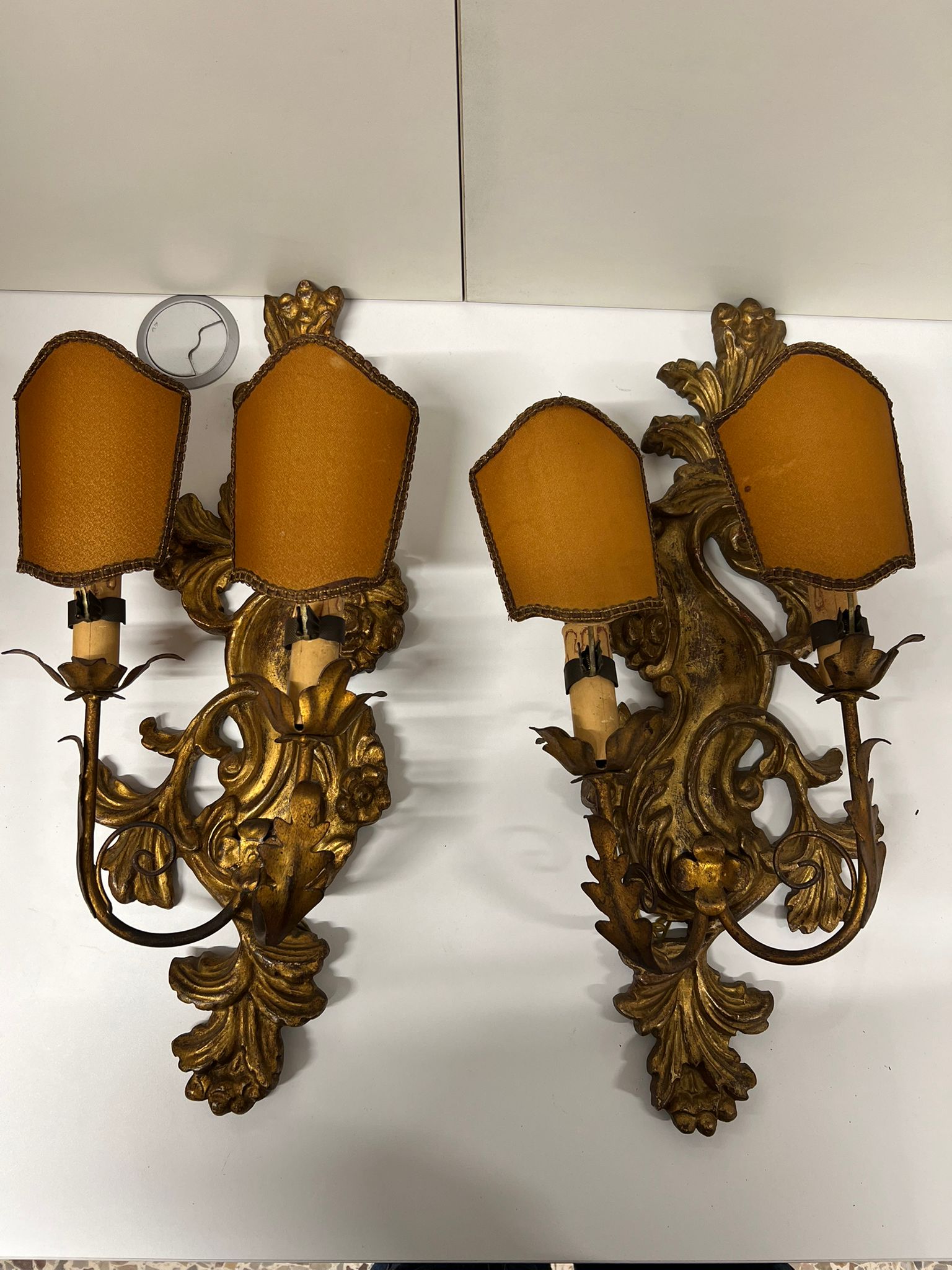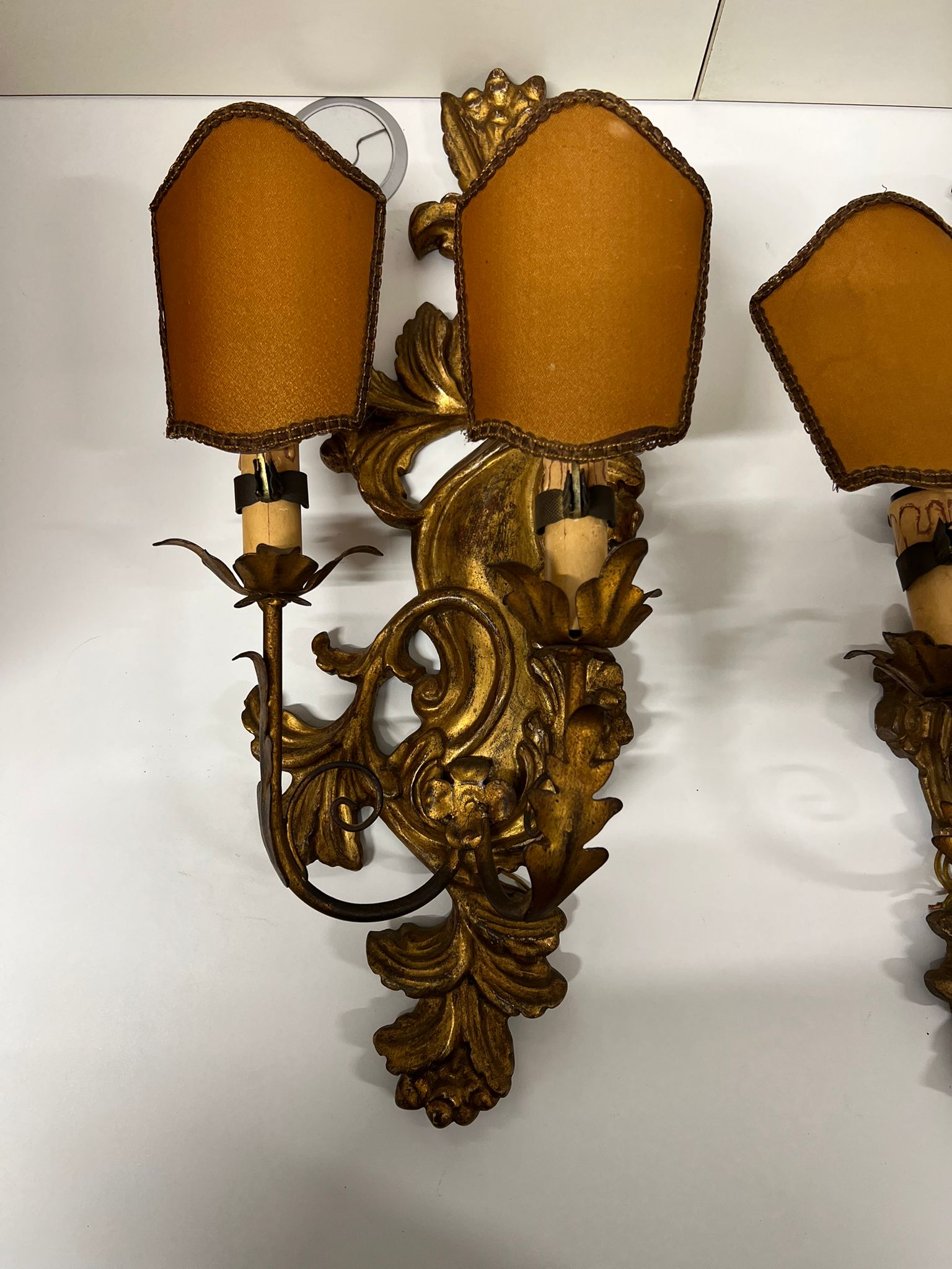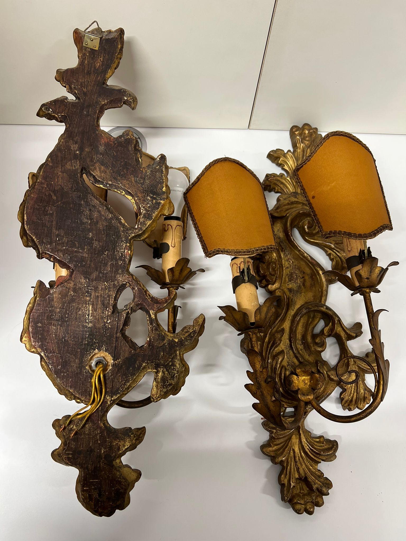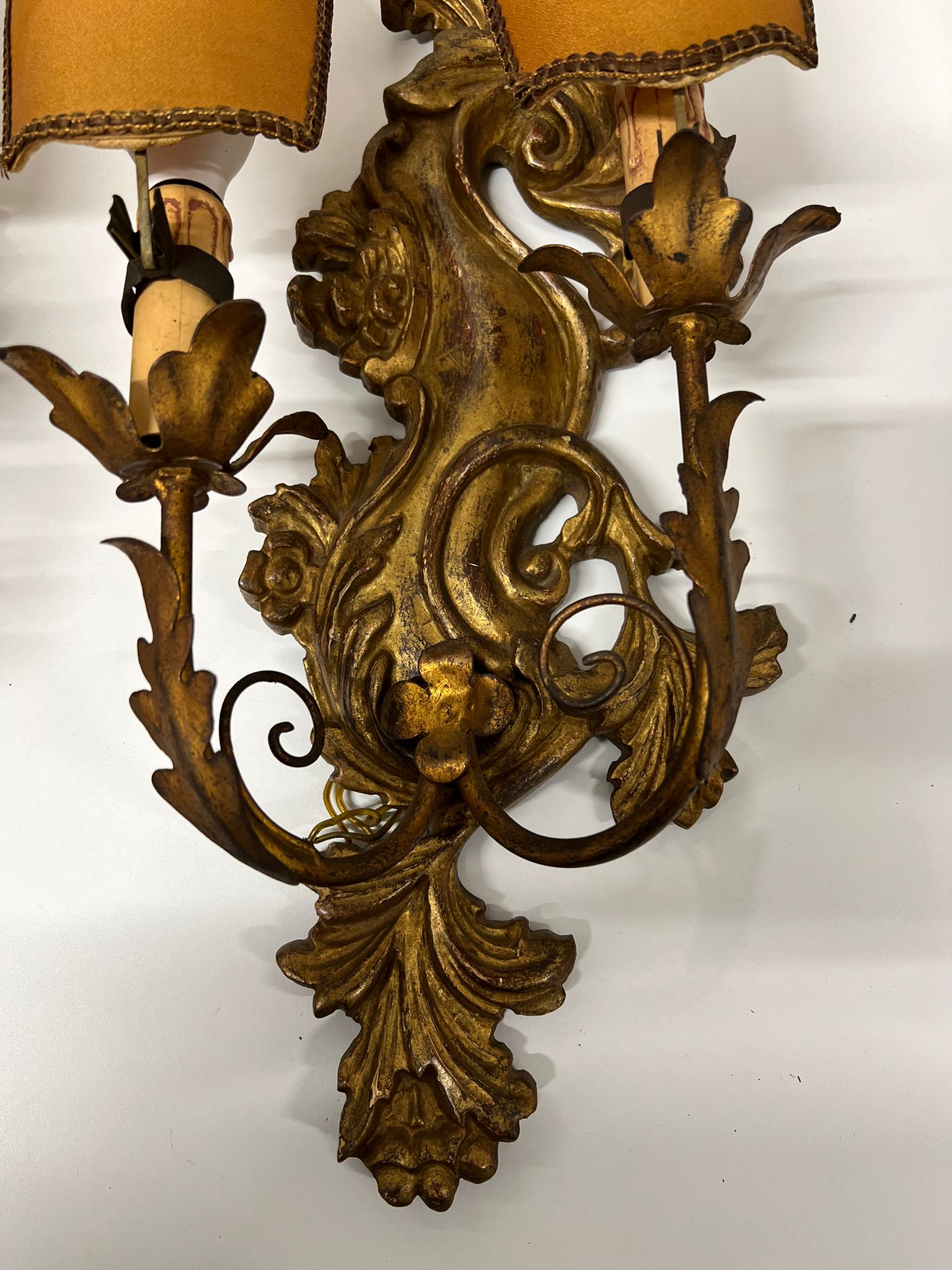 COPPIA DI APPLIQUE CON BASE IN LEGNO DORATO ORIGINALI FINE ‘800