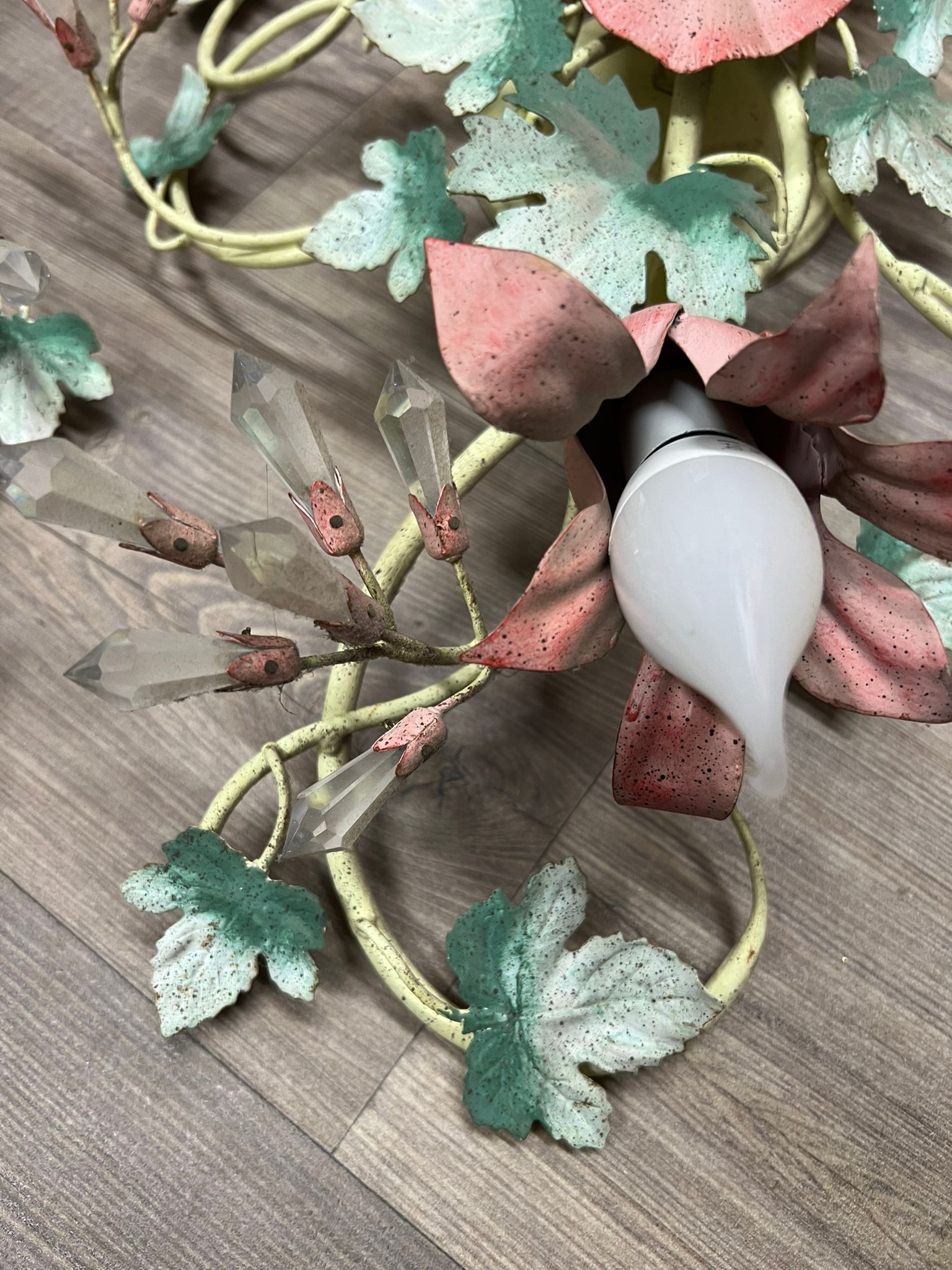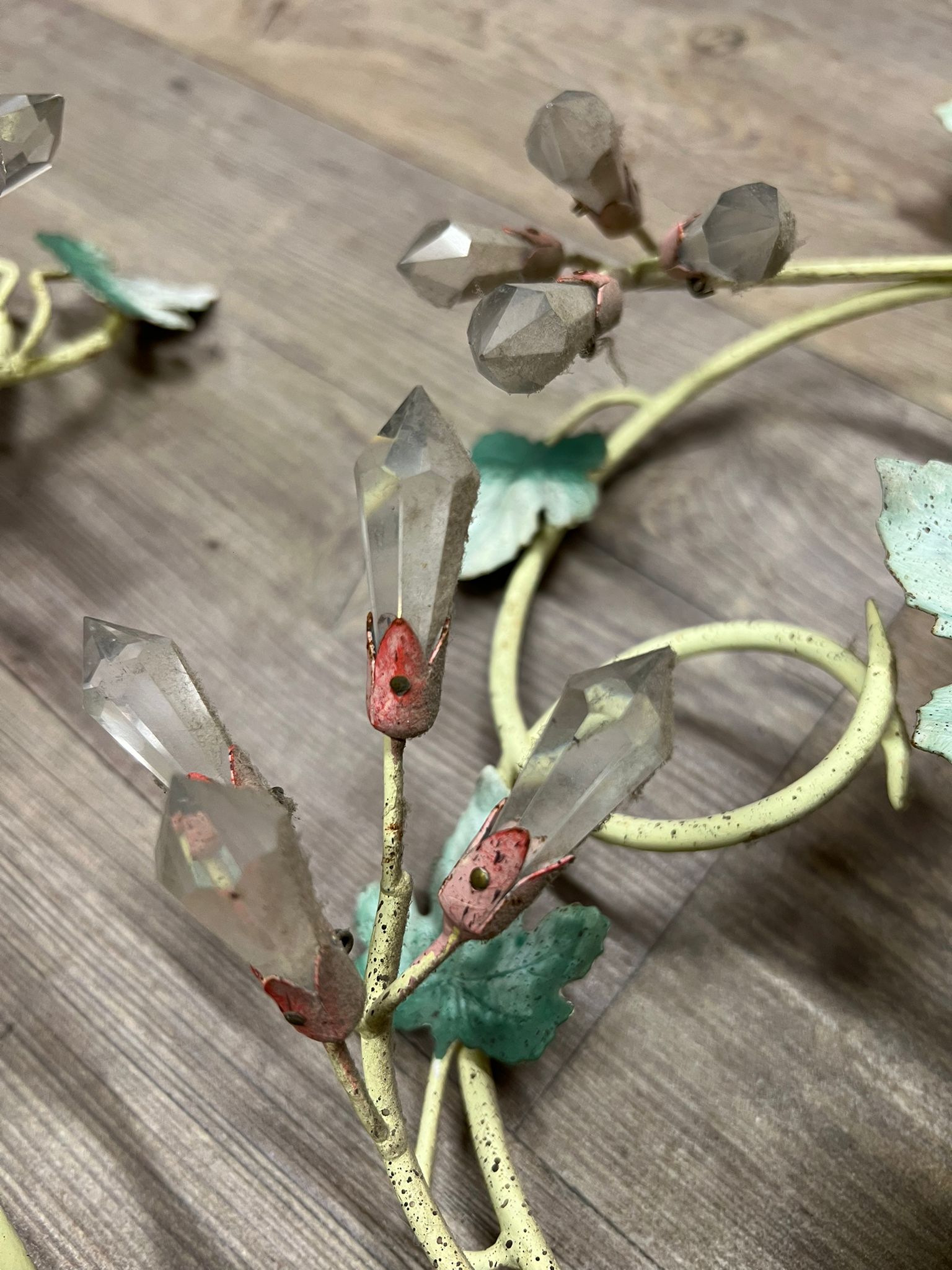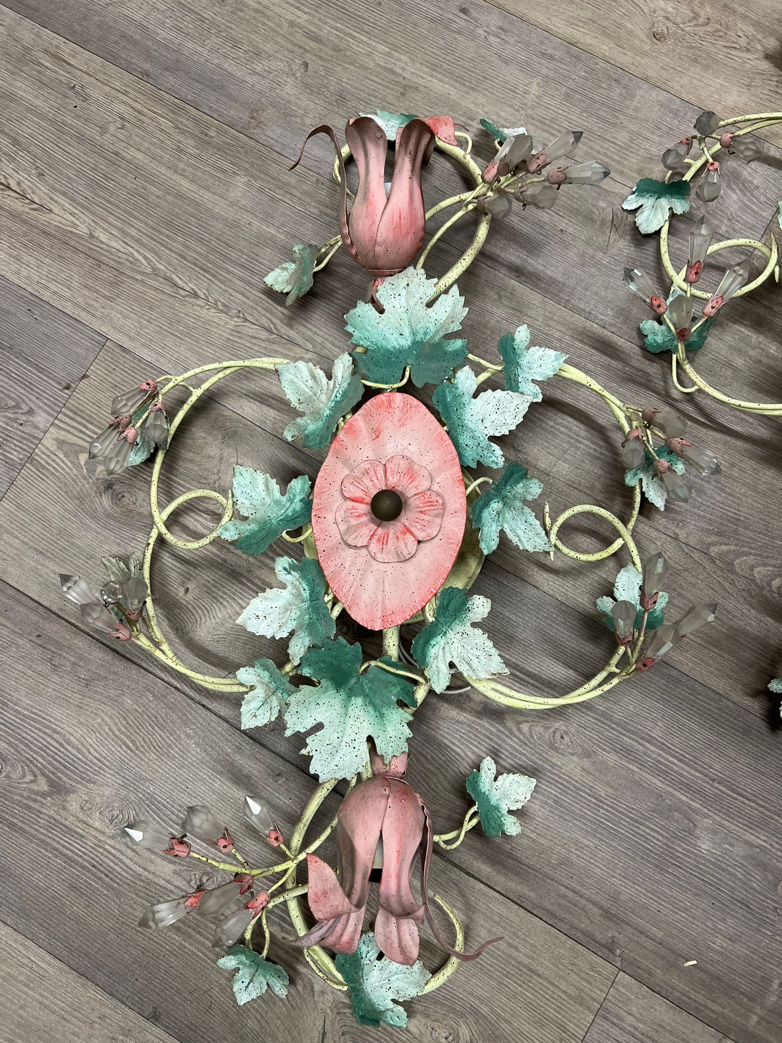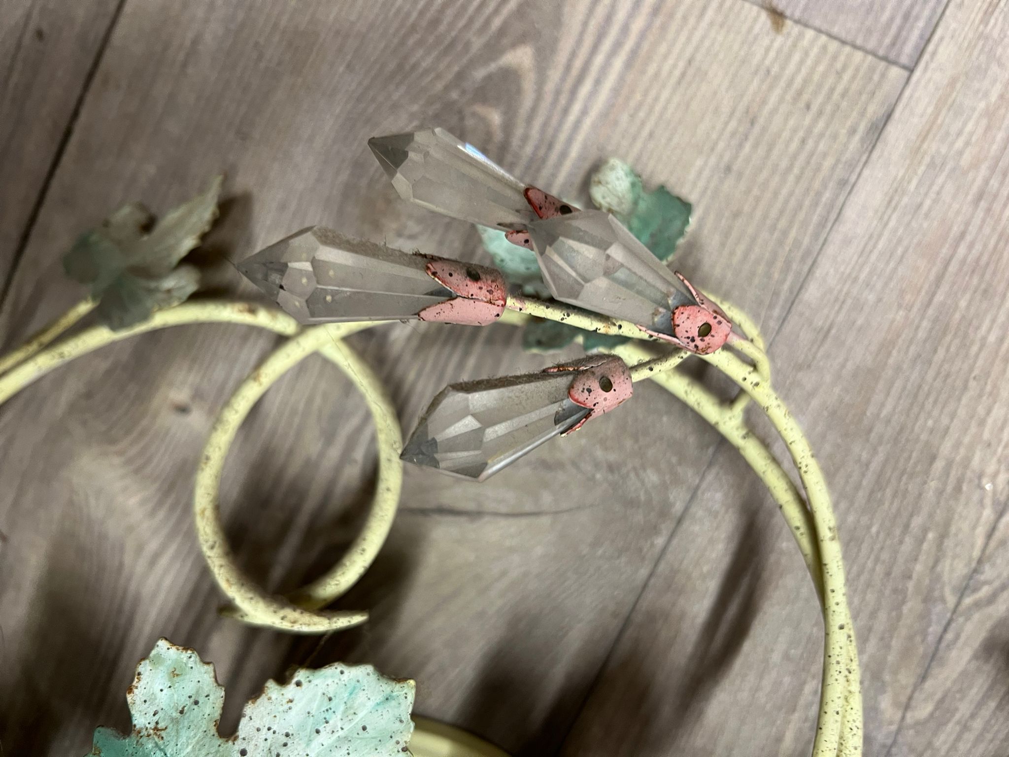 COPPIA DI APPLIQUE DA PARETE IN FERRO COLORATO E GOCCE VETRO