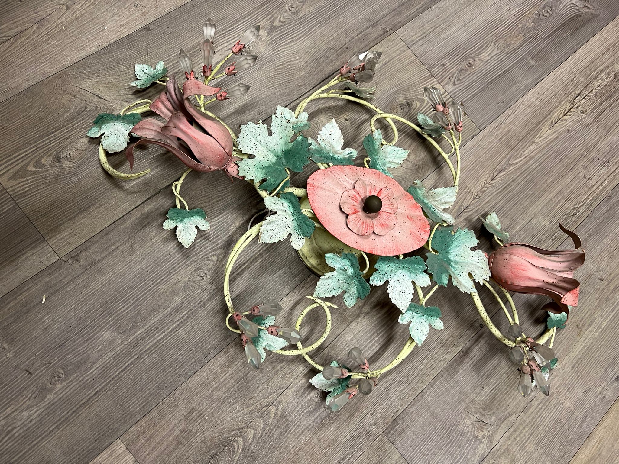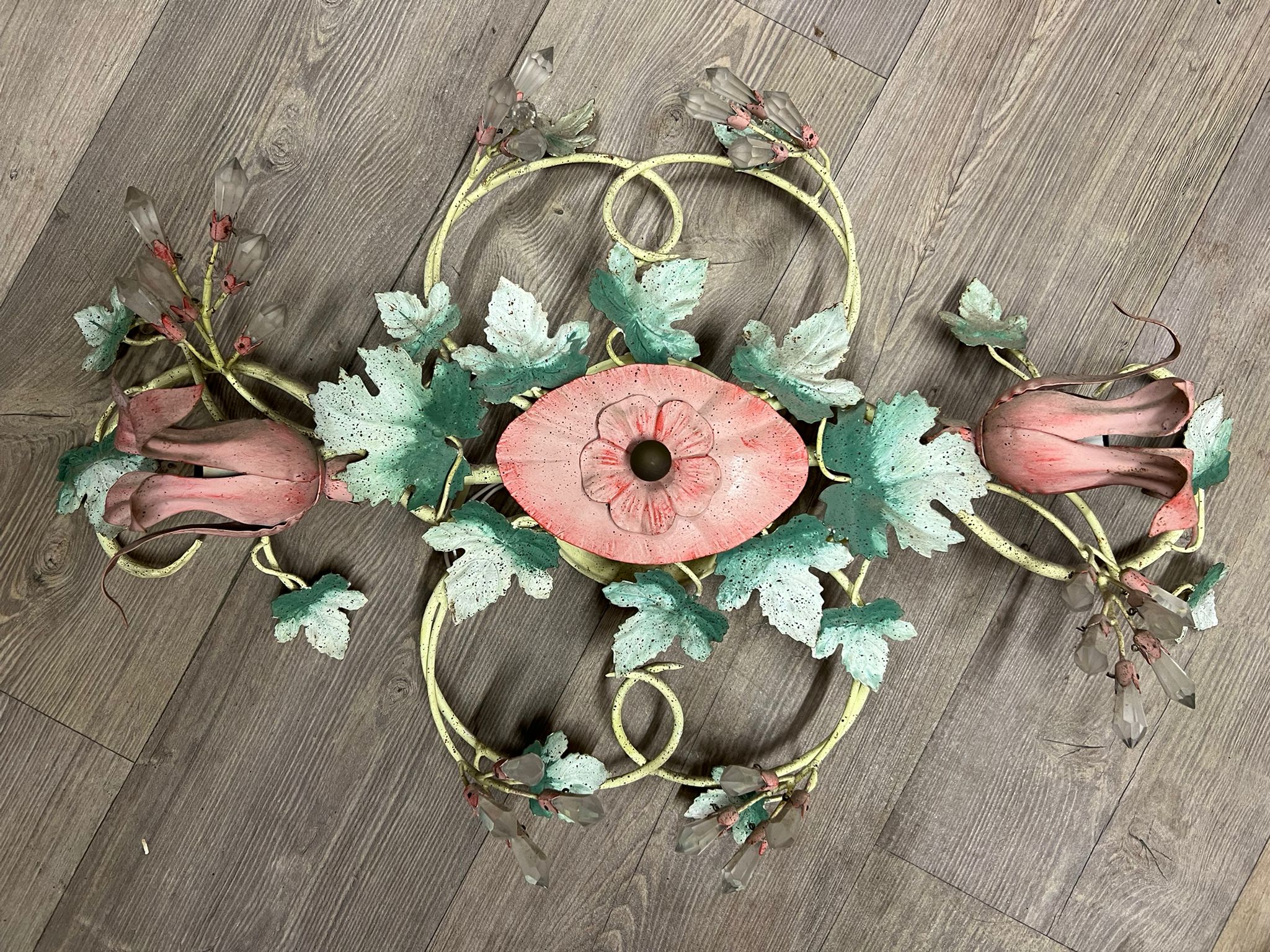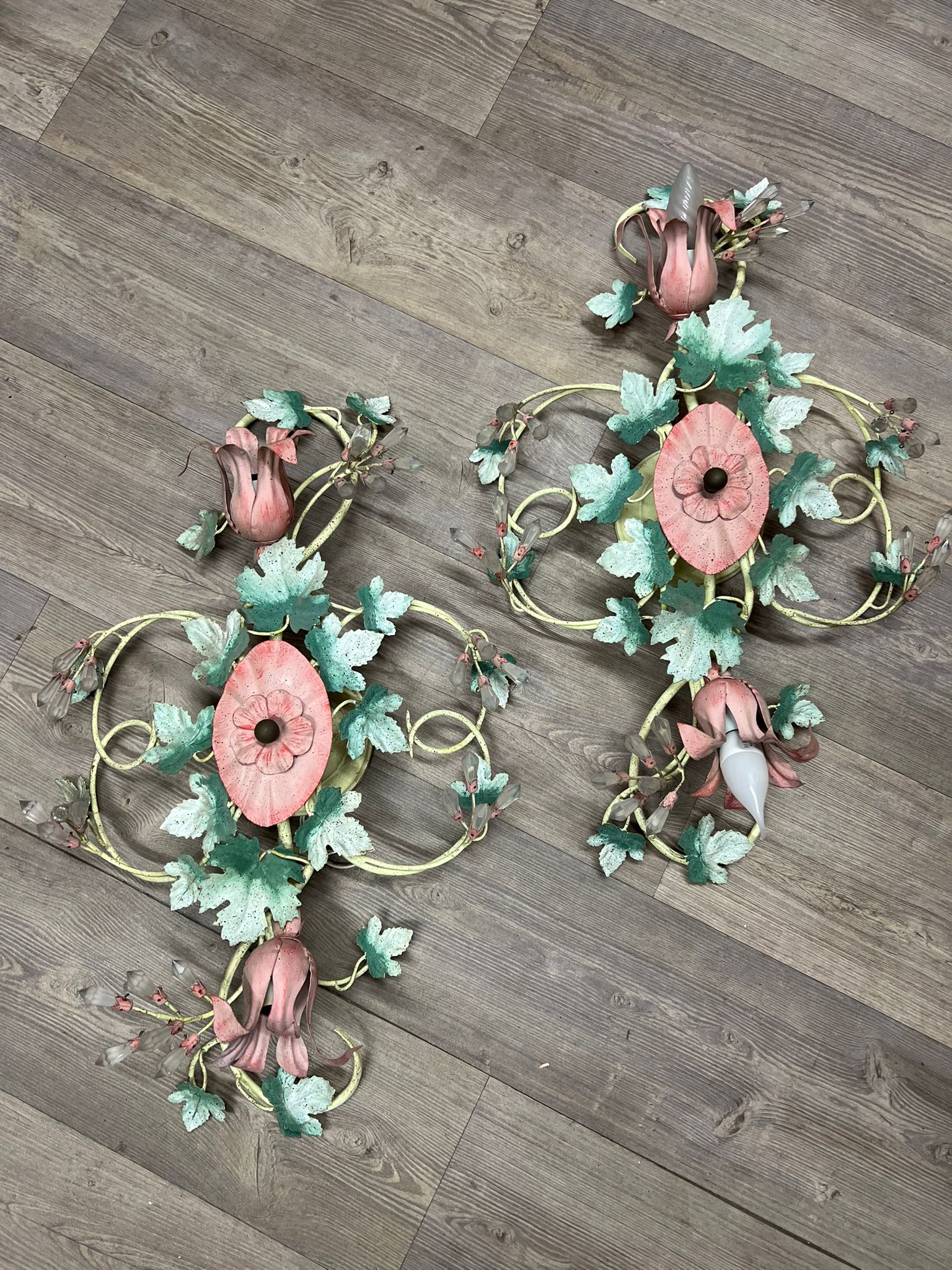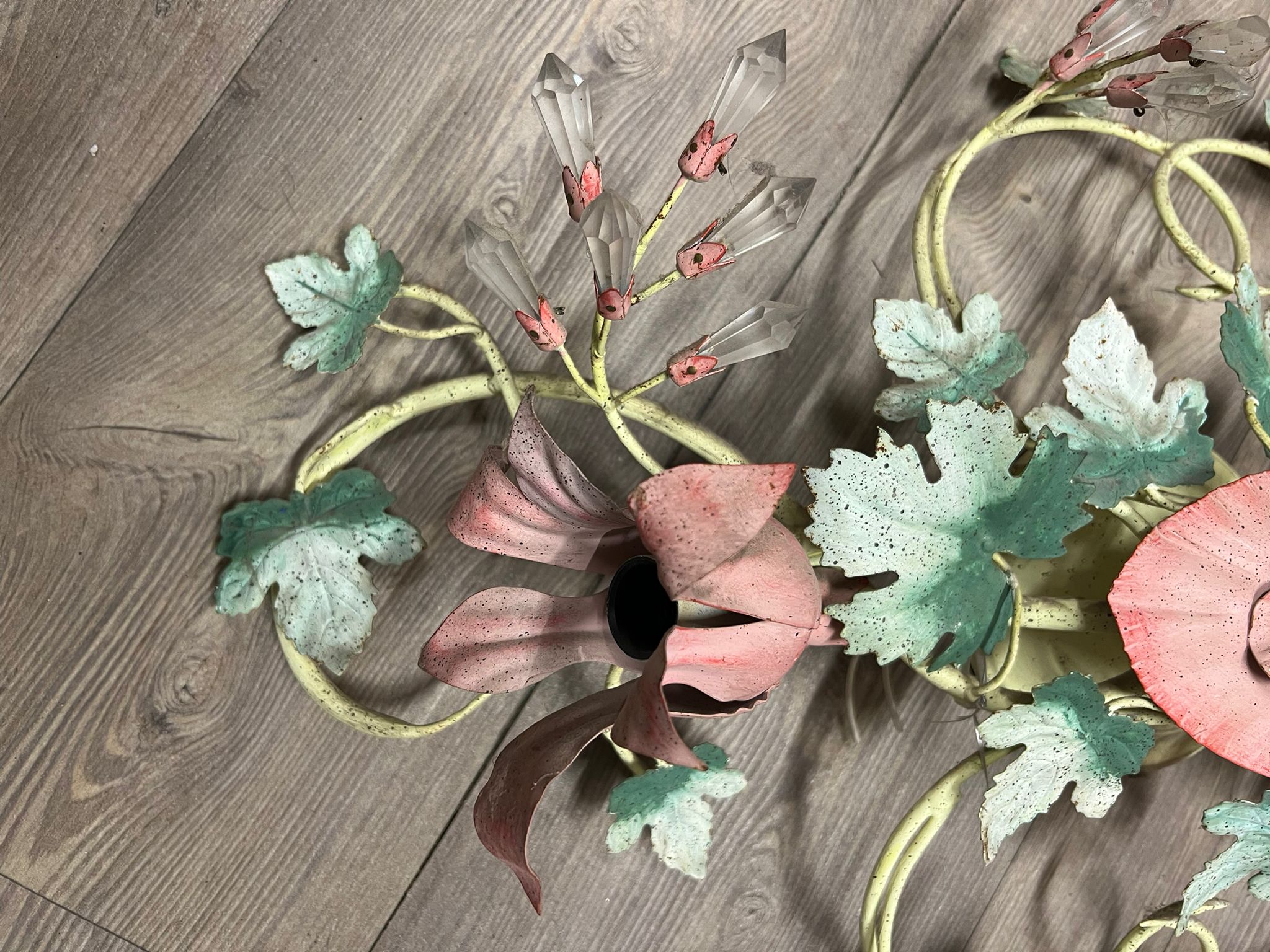 COPPIA DI APPLIQUE DA PARETE IN FERRO COLORATO E GOCCE VETRO