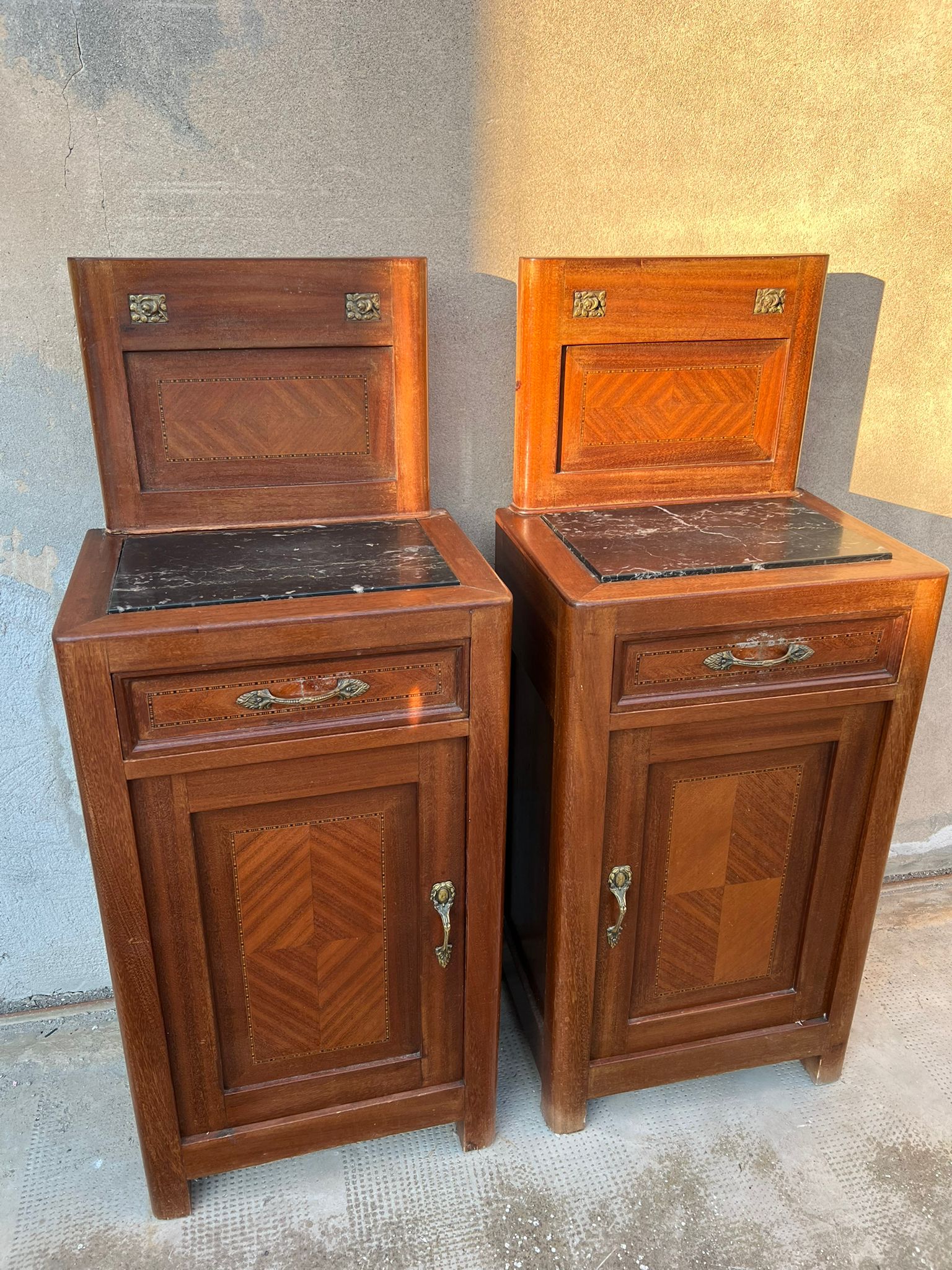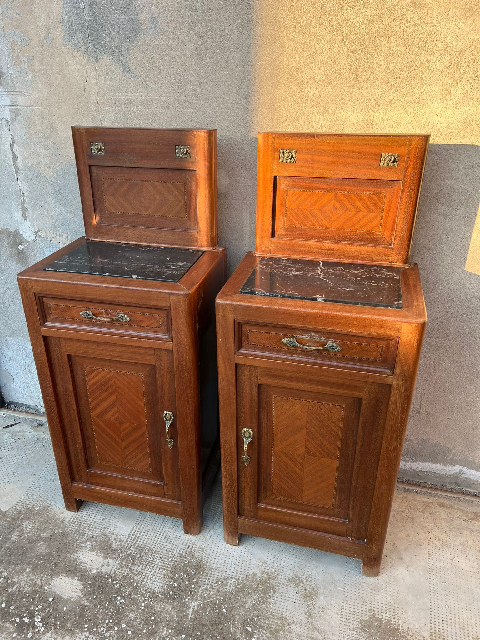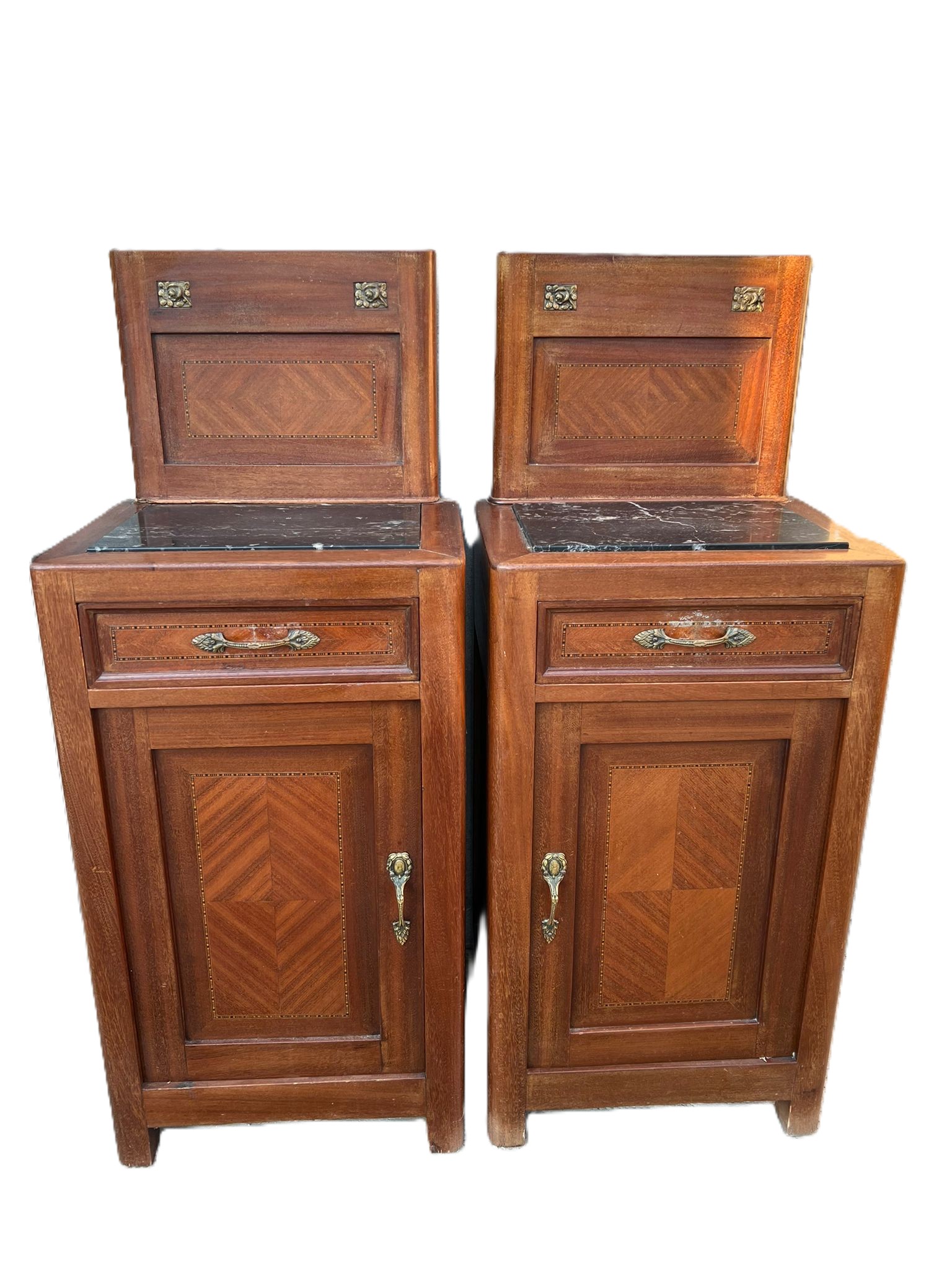 COPPIA DI COMODINI CON RIPIANO IN MARMO NERO