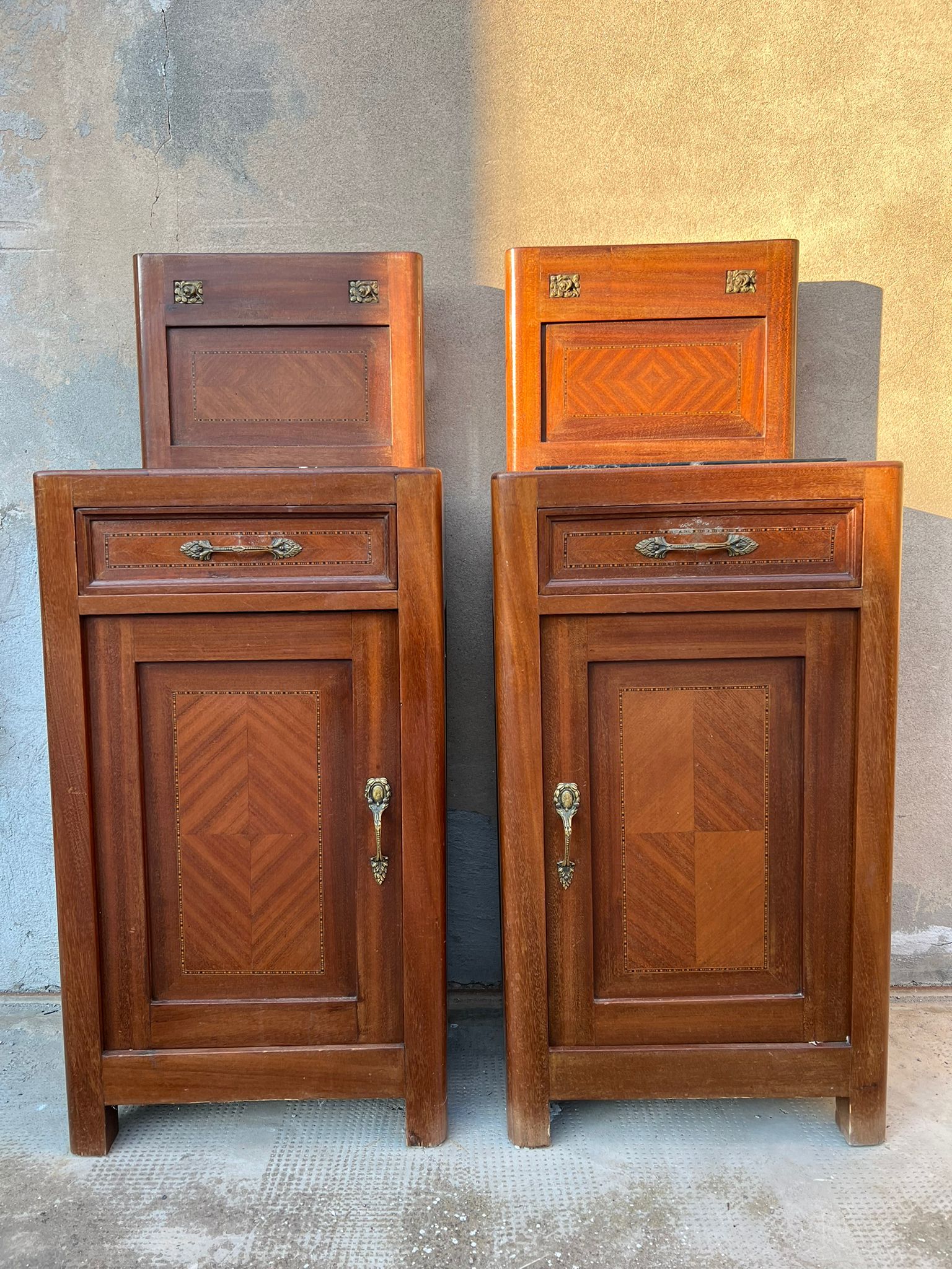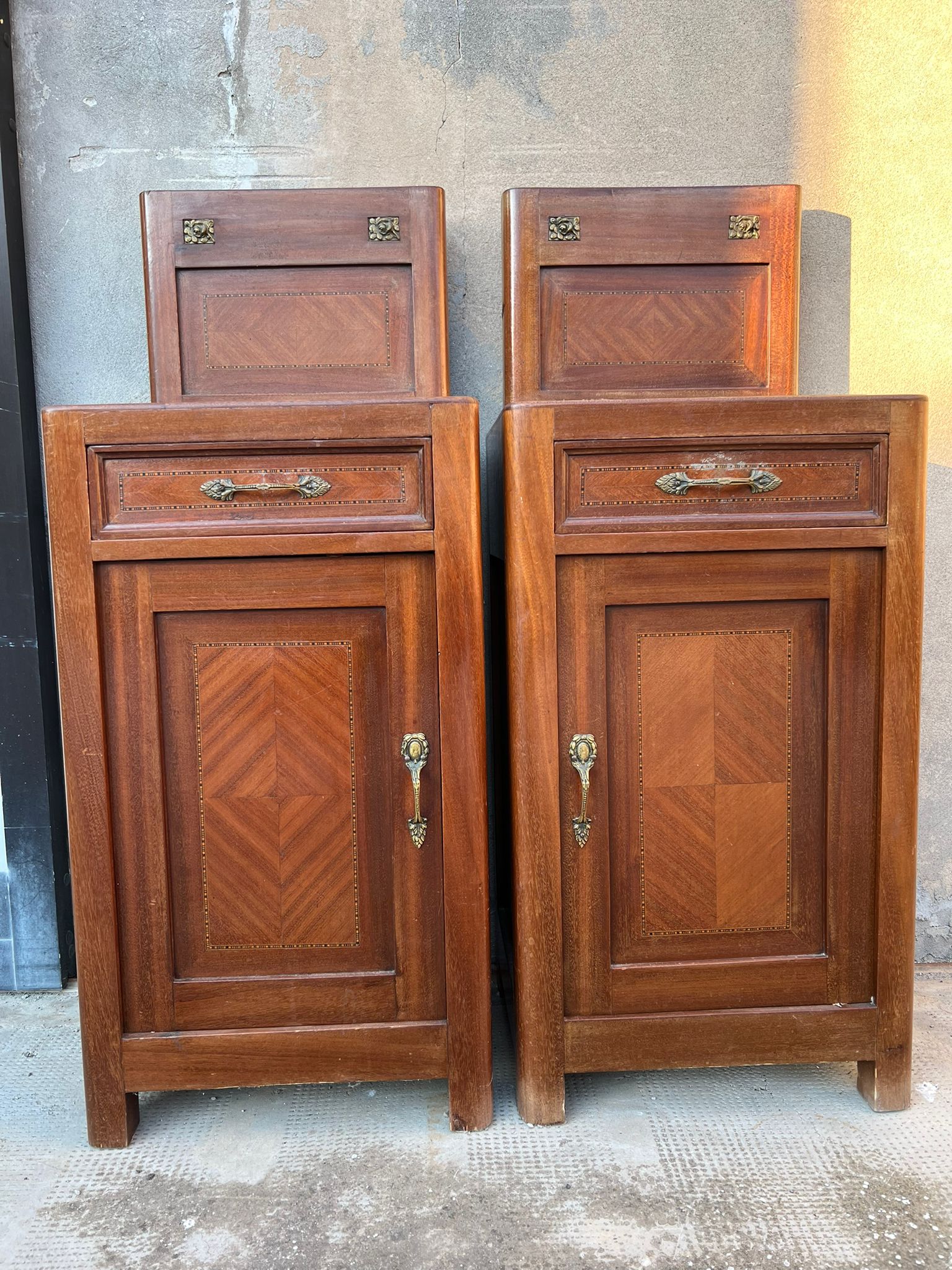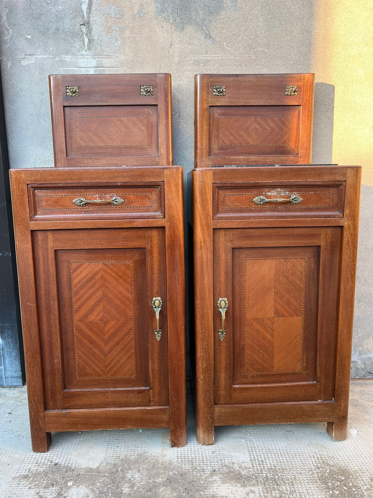 COPPIA DI COMODINI CON RIPIANO IN MARMO NERO