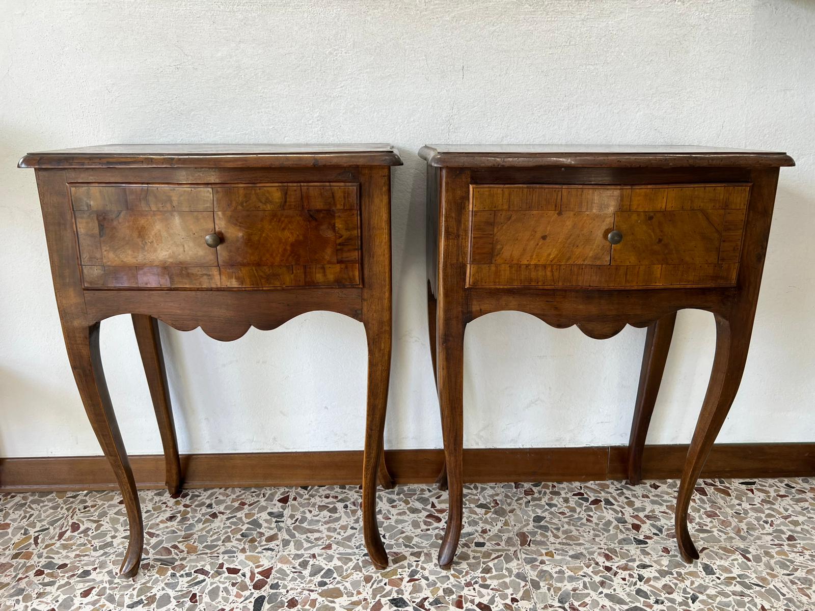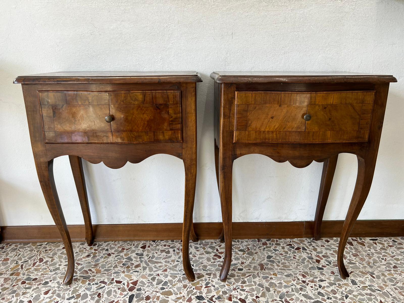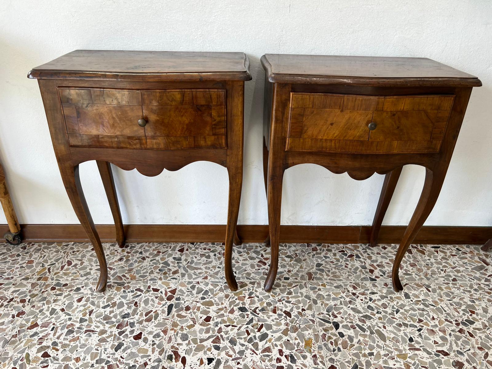 COPPIA DI COMODINI LASTRONATI IN NOCE