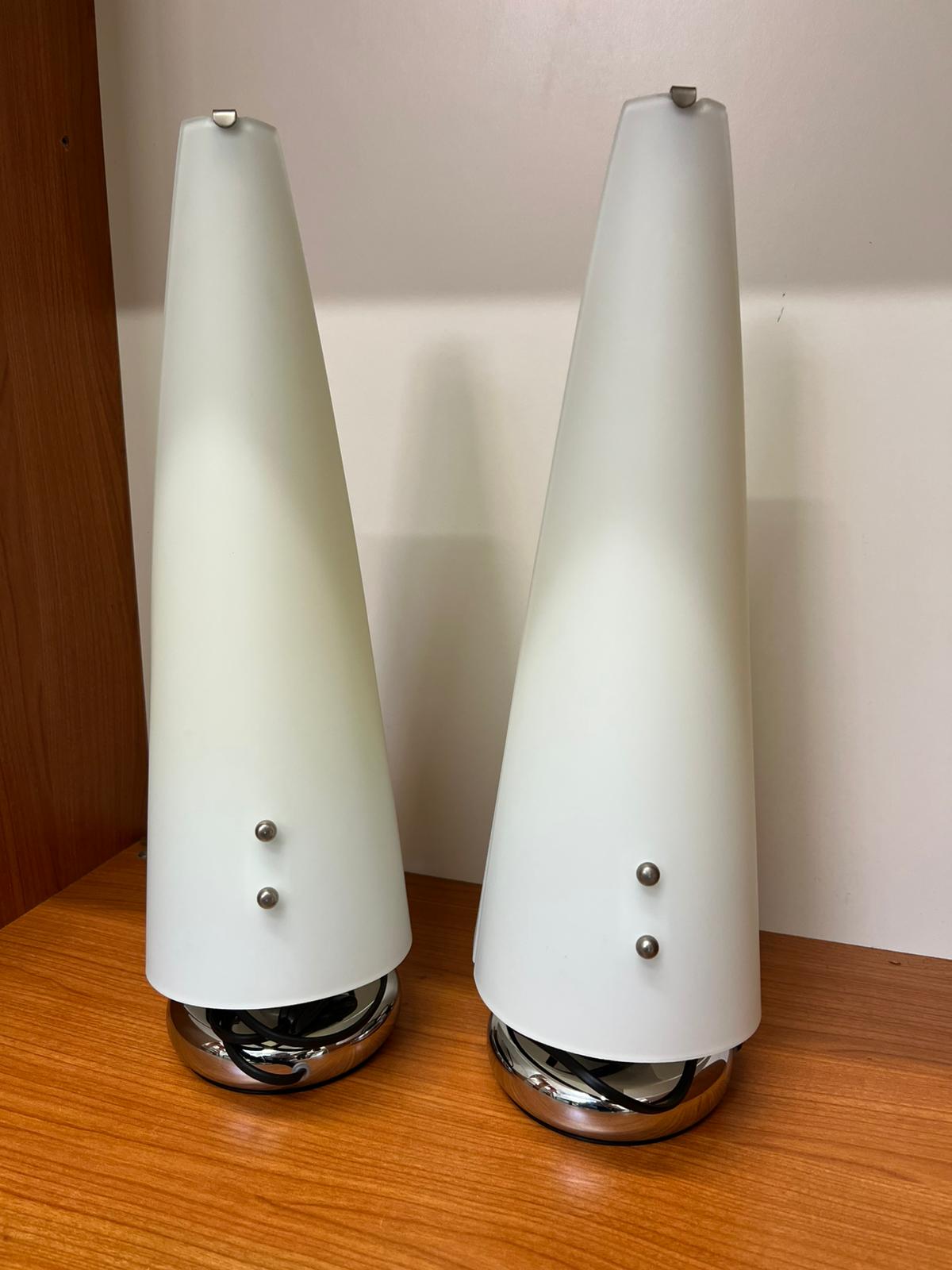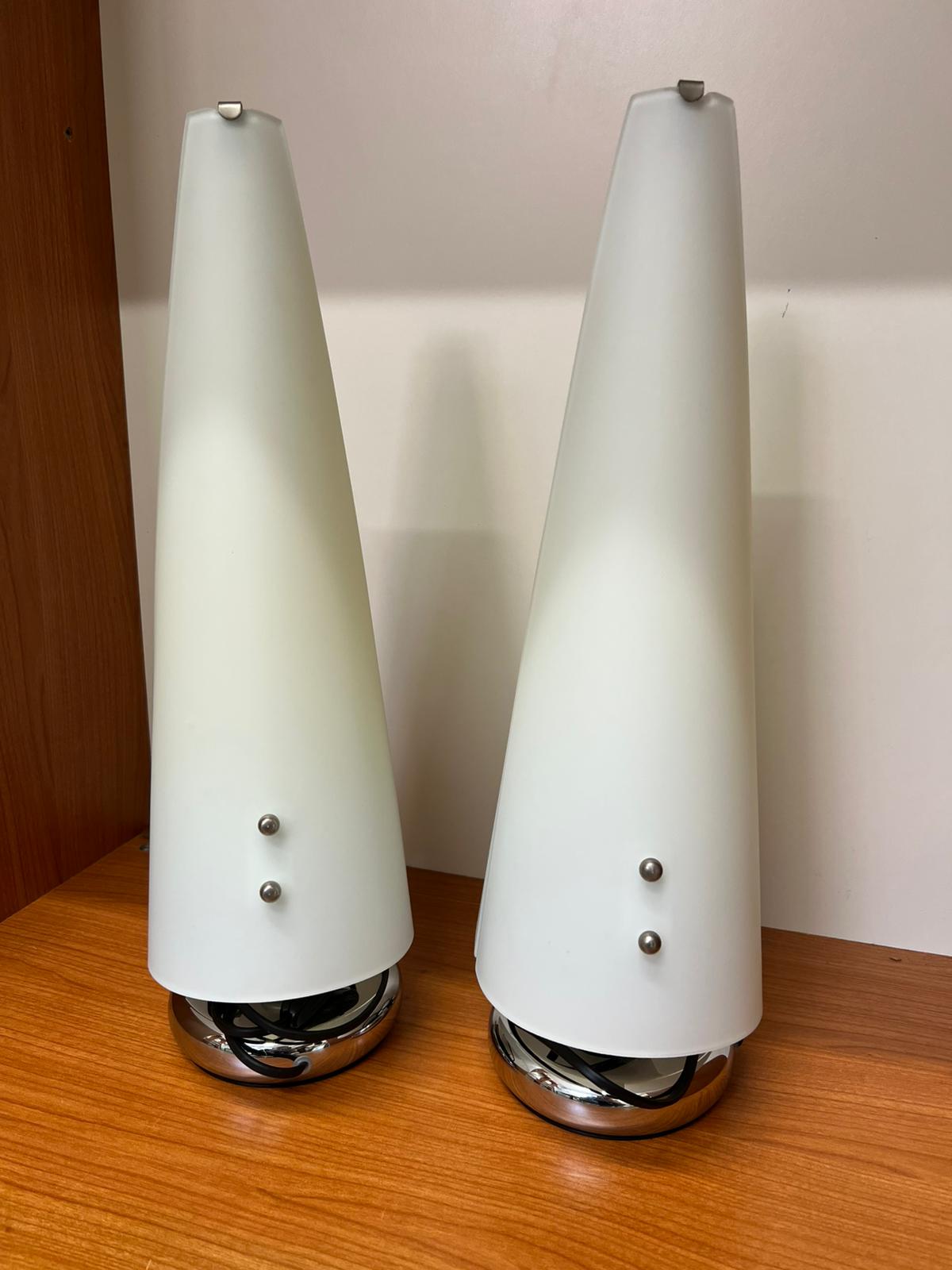 COPPIA LAMPADE ‘AGOSTINELLI’ VETRO E ACCIAIO
