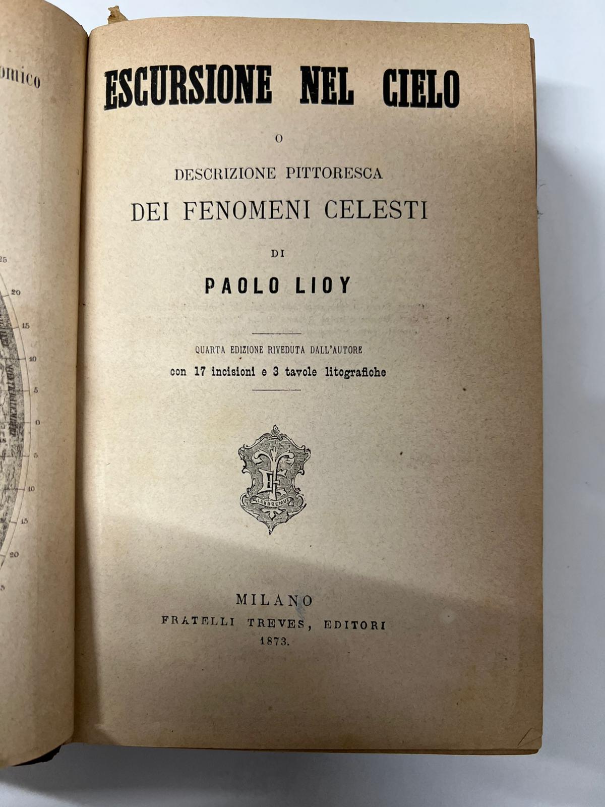 LIBRO ANTICO ‘ESCURSIONI NEL CIELO’ DI PAOLO LIOY ED. TREVES MILANO 1873