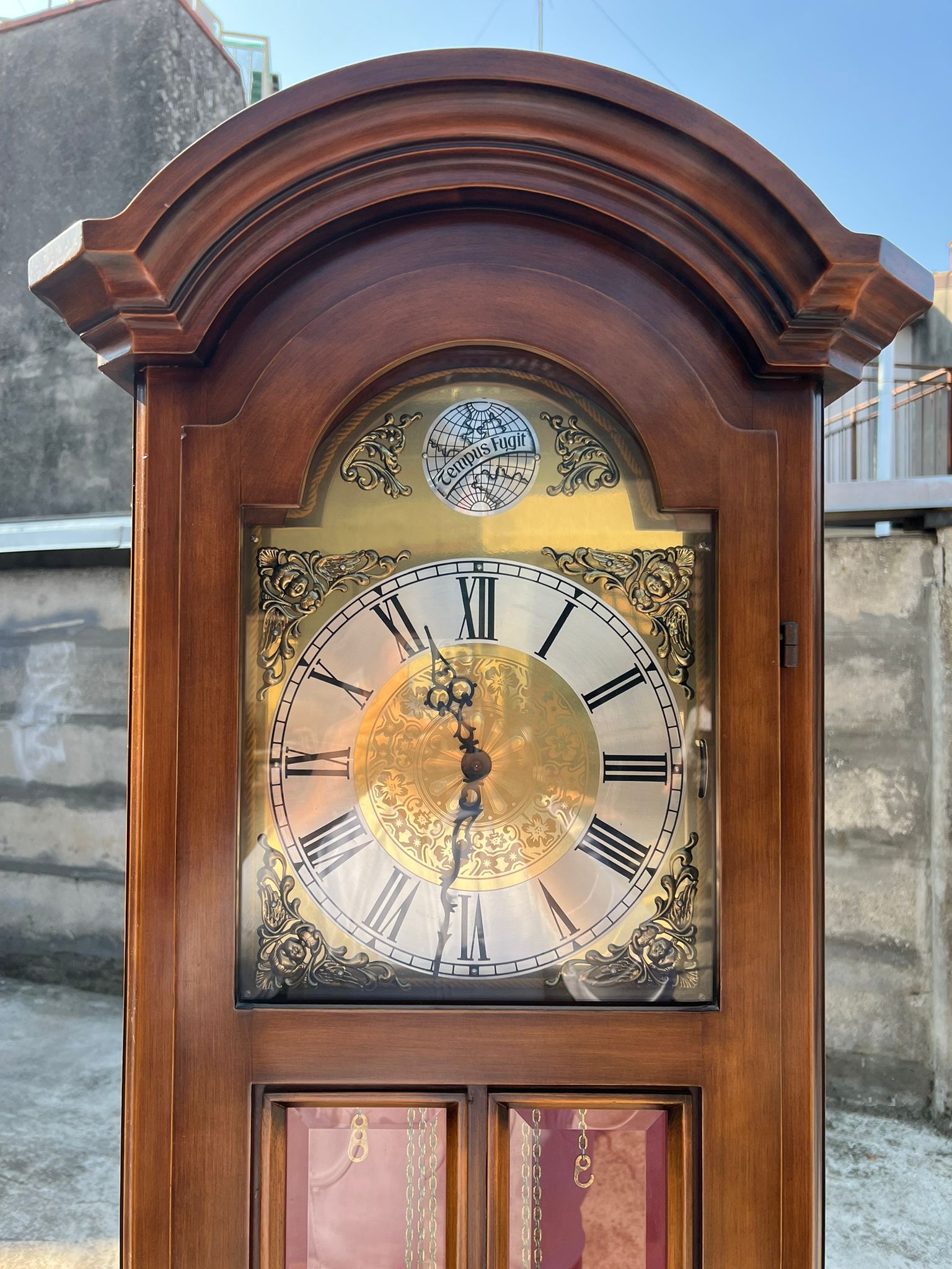 OROLOGIO A PENDOLO ‘TEMPUS FUGIT’ FUNZIONANTE E COMPLETO.