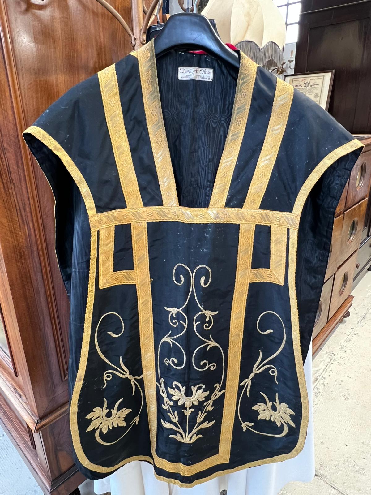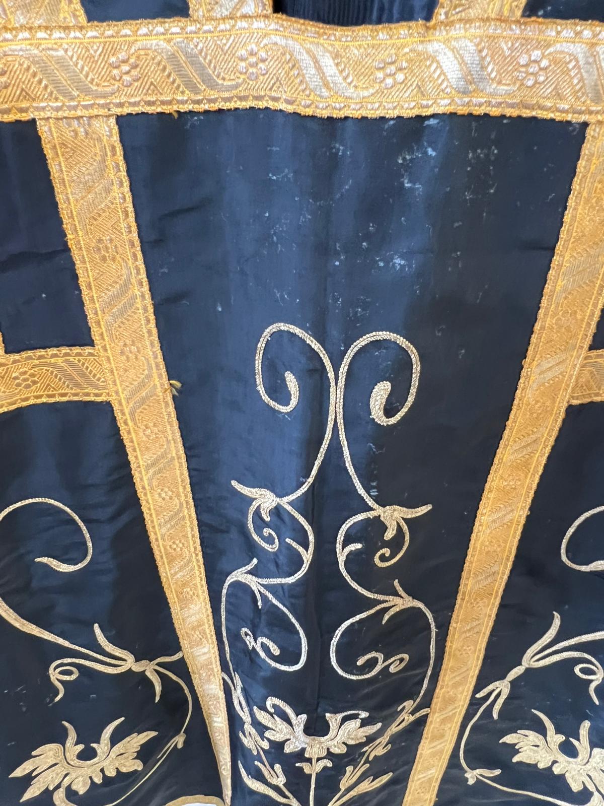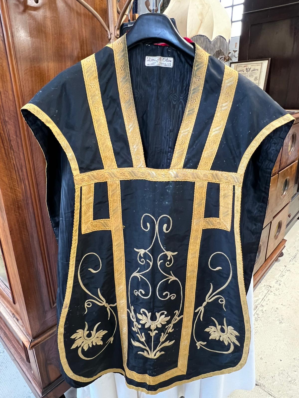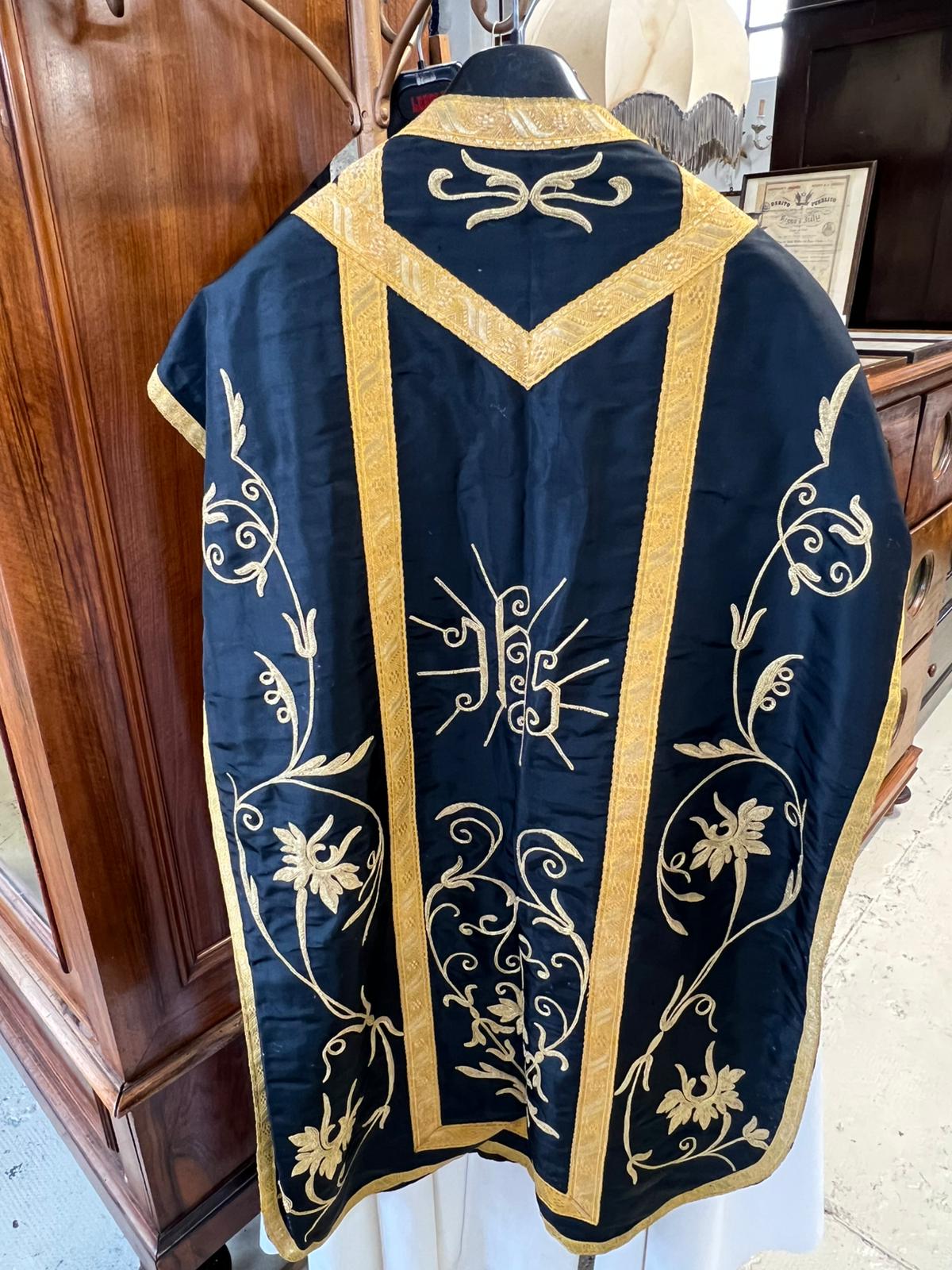 PIANETA ROMANA IN TESSUTO NERO CON DECORAZIONI DORATE