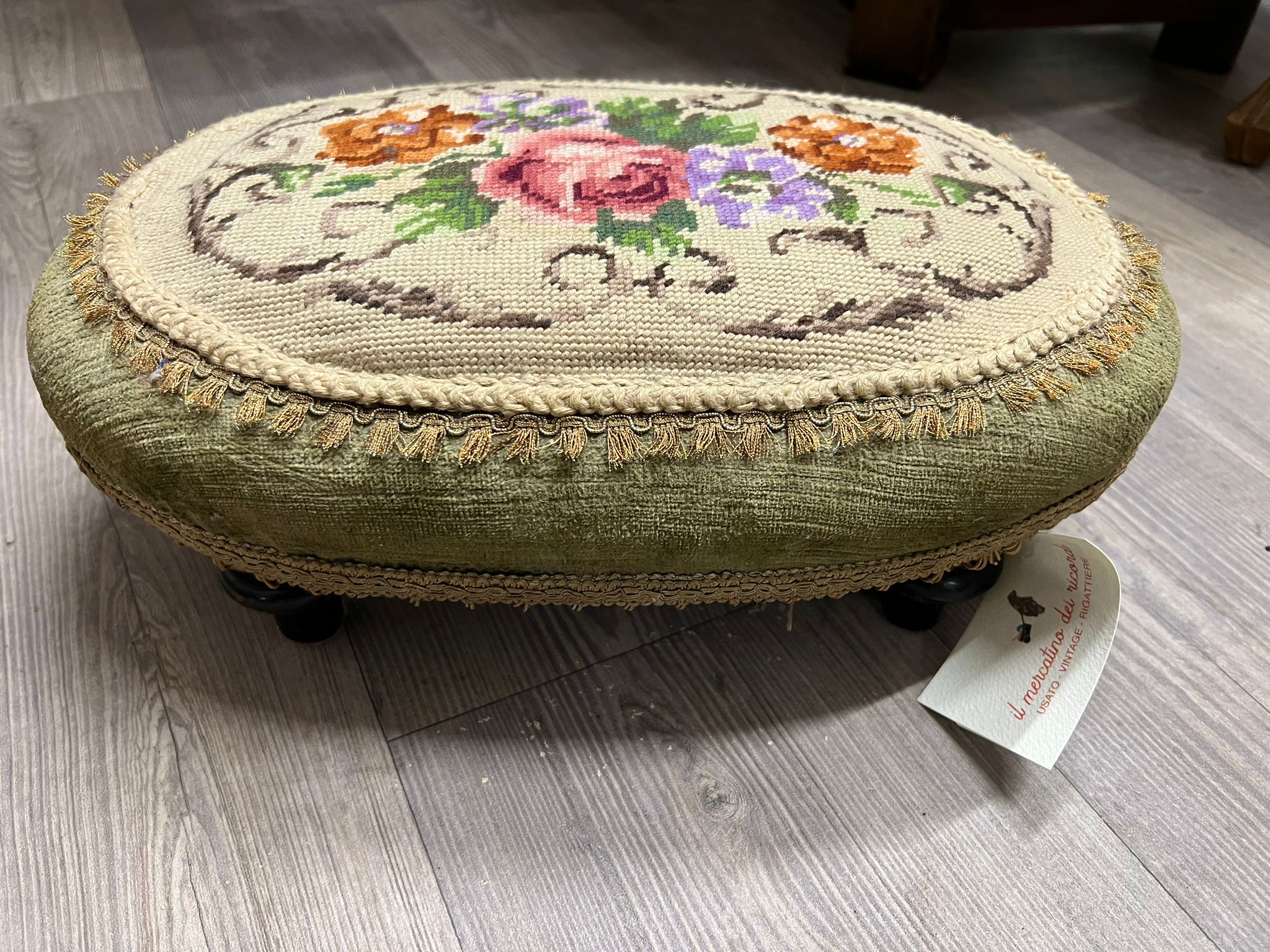 SGABELLO POGGIAPIEDI RICAMATO FINE ‘800