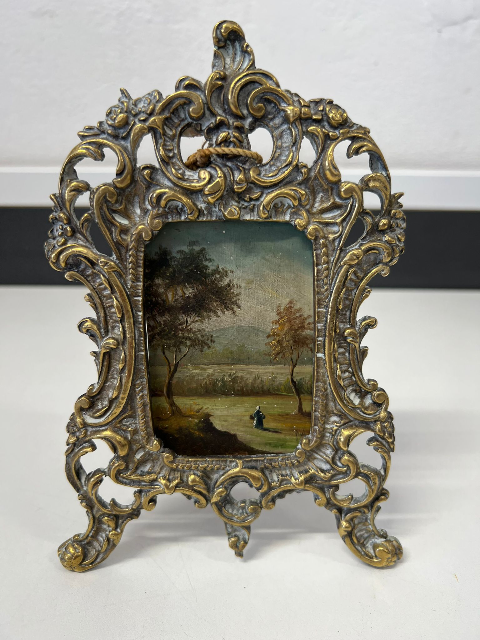 QUADRETTO DIPINTO A MANO CON CORNICE IN BRONZO DORATO DECORATA 1