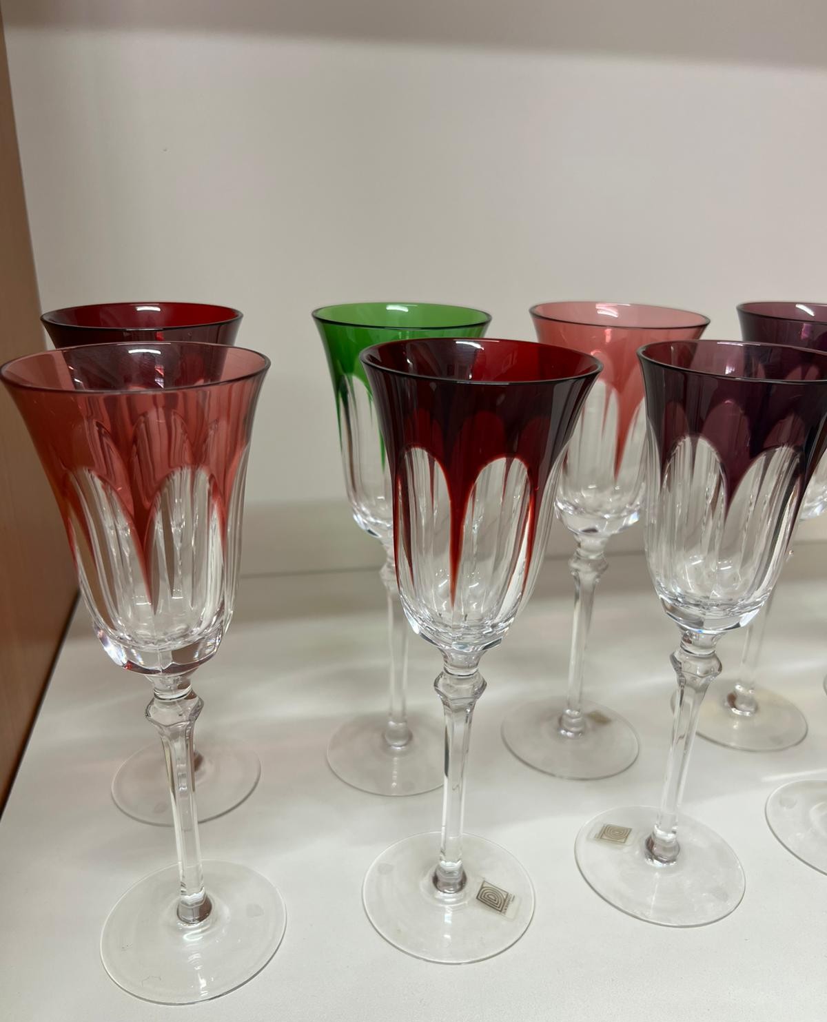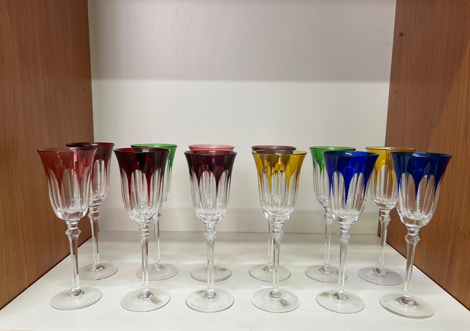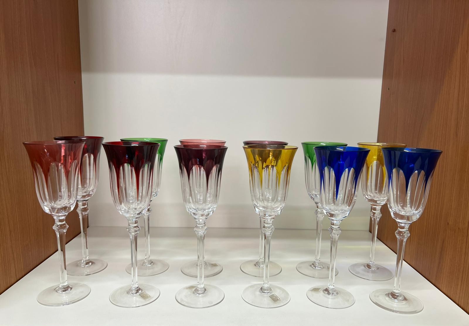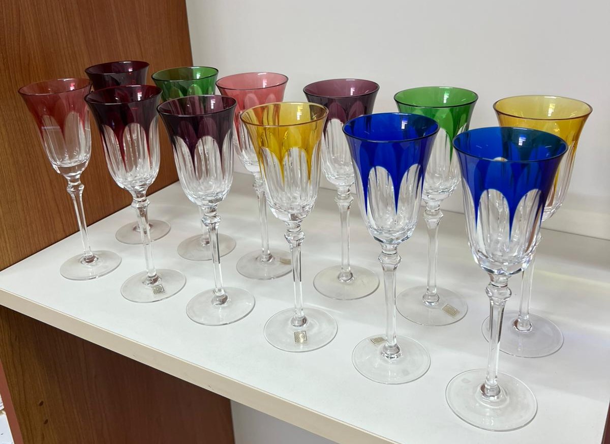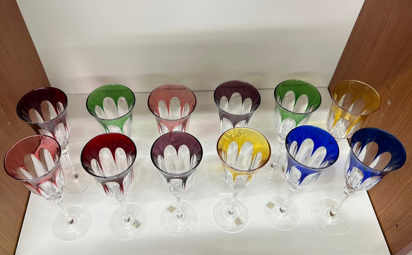 Servizio di 12 calici in cristallo al piombo colorato firmati