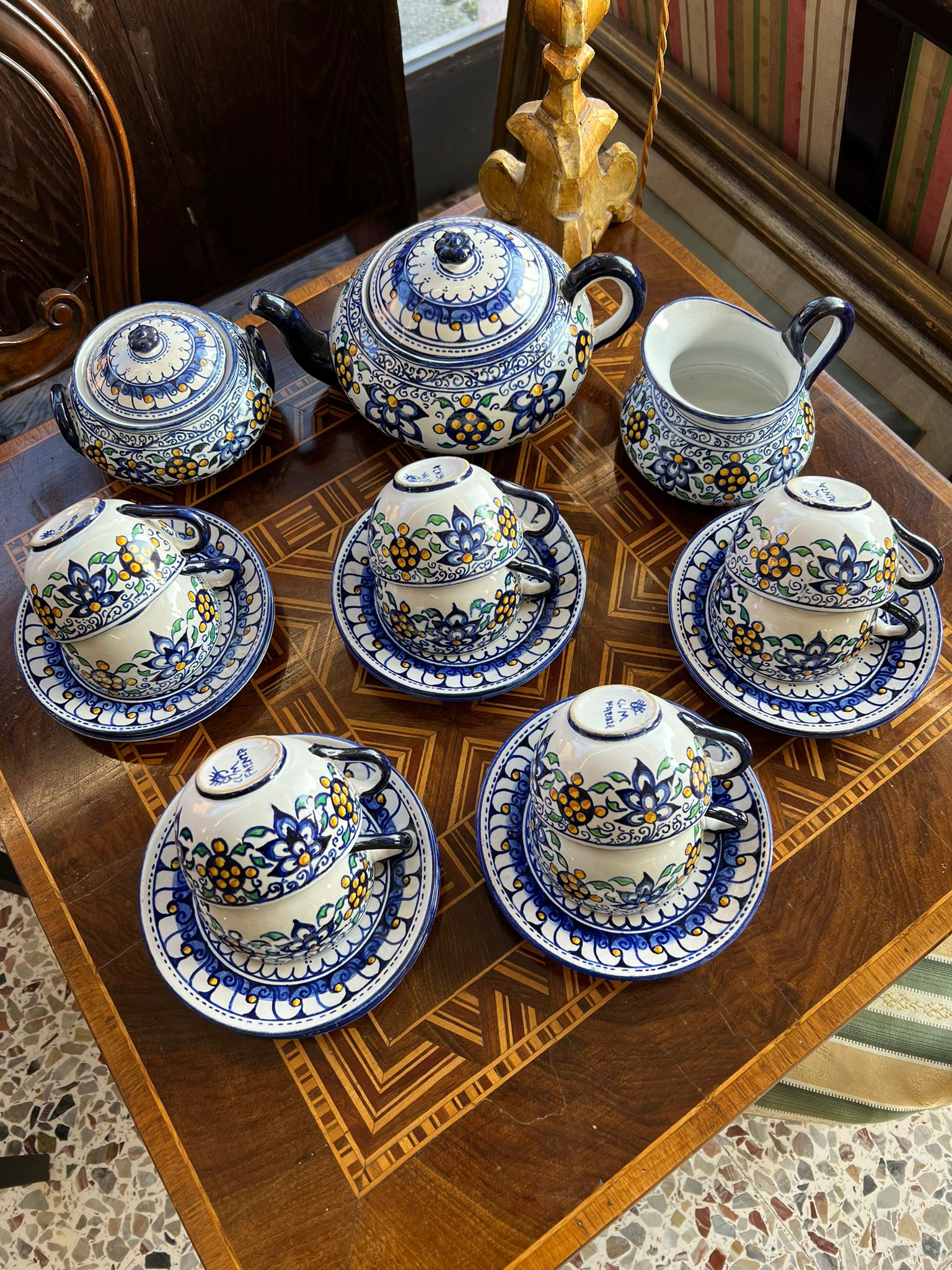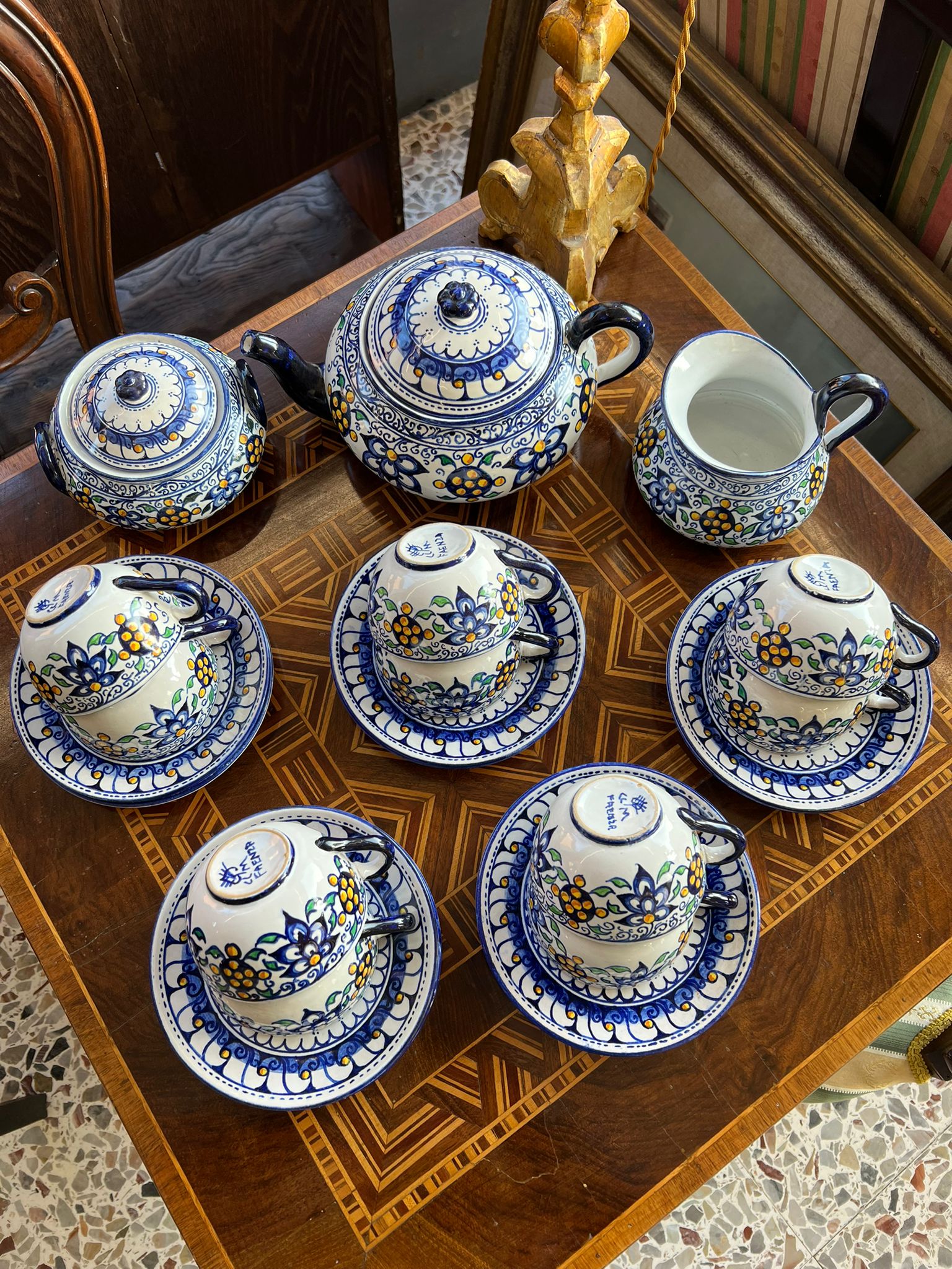 MERAVIGLIOSO SERVIZIO DA TE’ IN CERAMICA FIRMATO FAENZA COSI COMPOSTO: