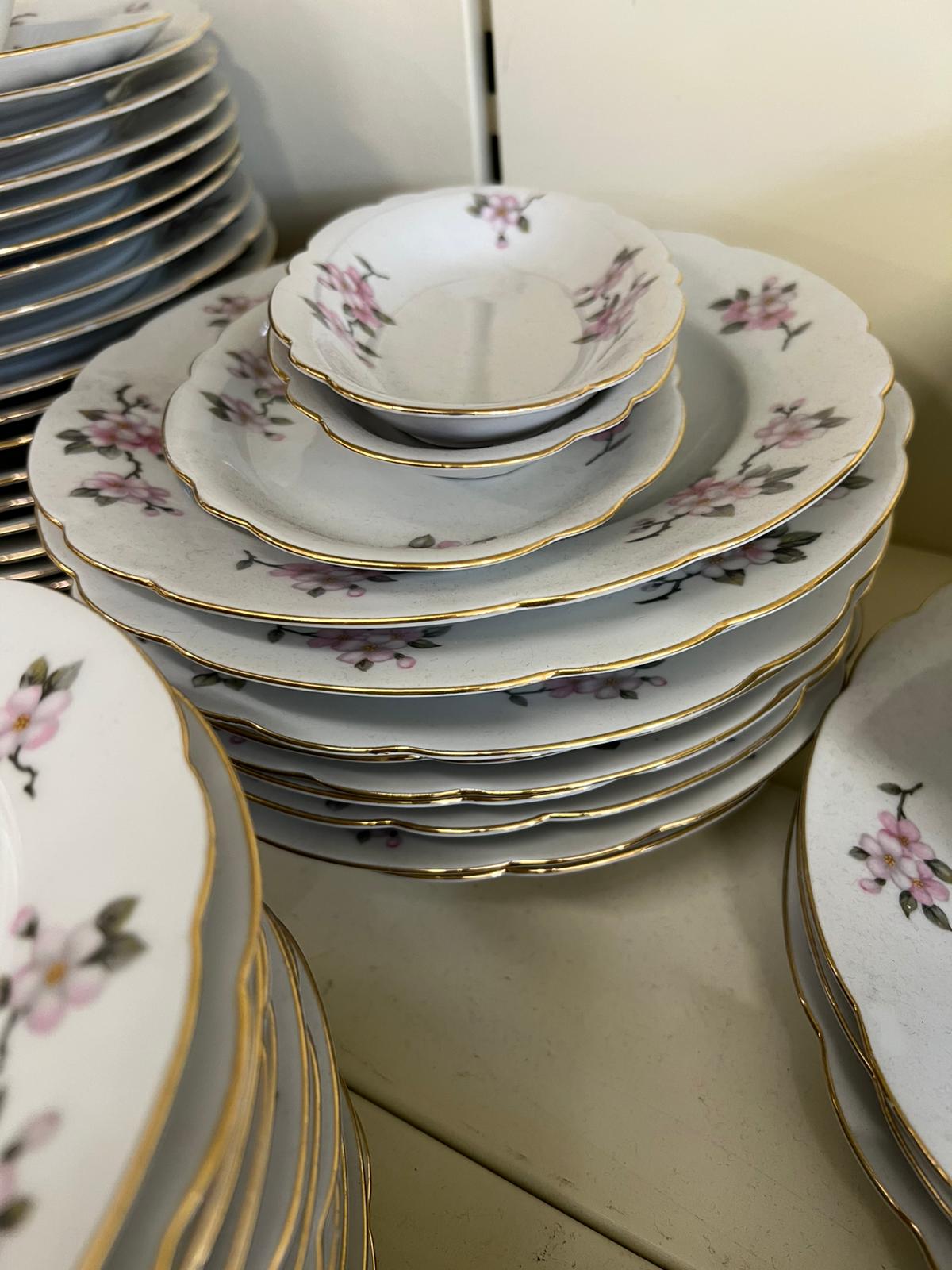SERVIZIO PIATTI NORA BAVARIA 59 PEZZI DECORO FLOREALE ROSA