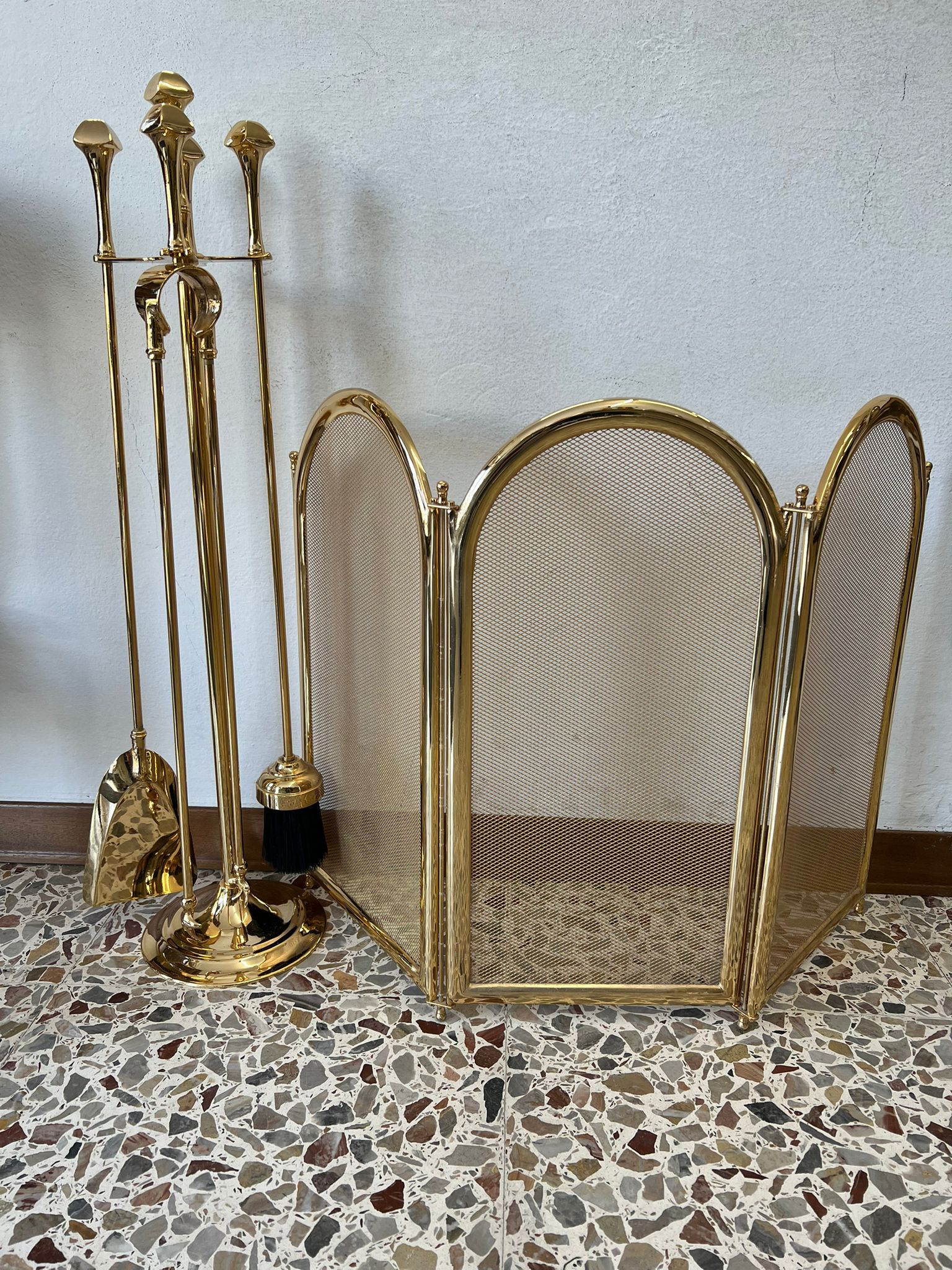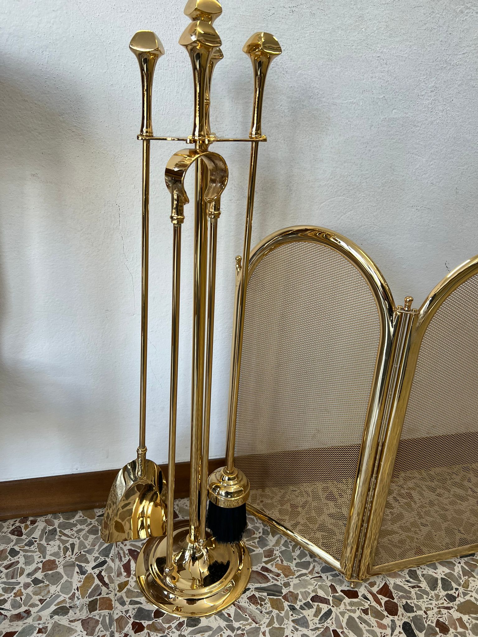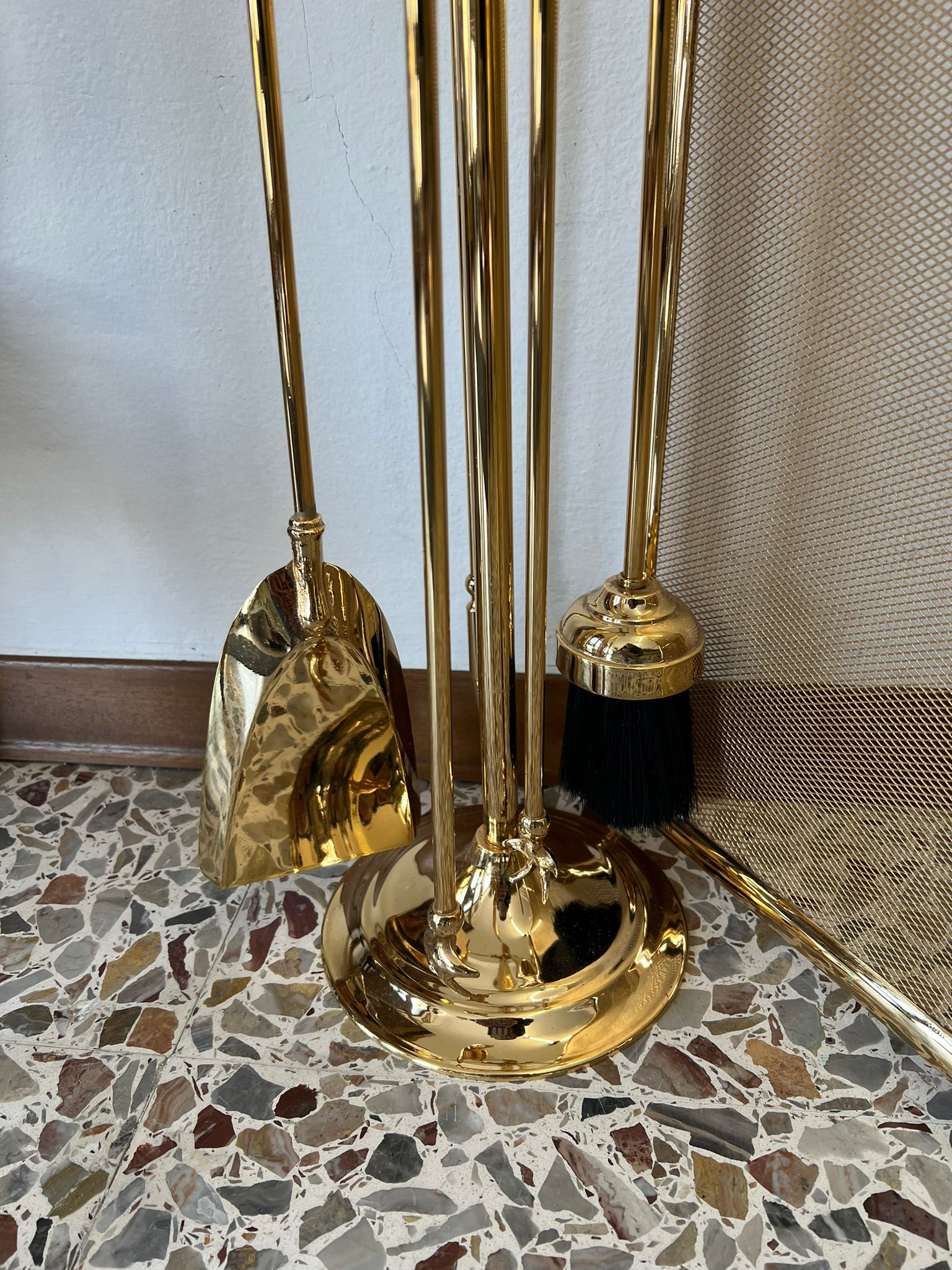 SET DA CAMINO CON PARASCINTILLE E ACCESSORI IN OTTONE