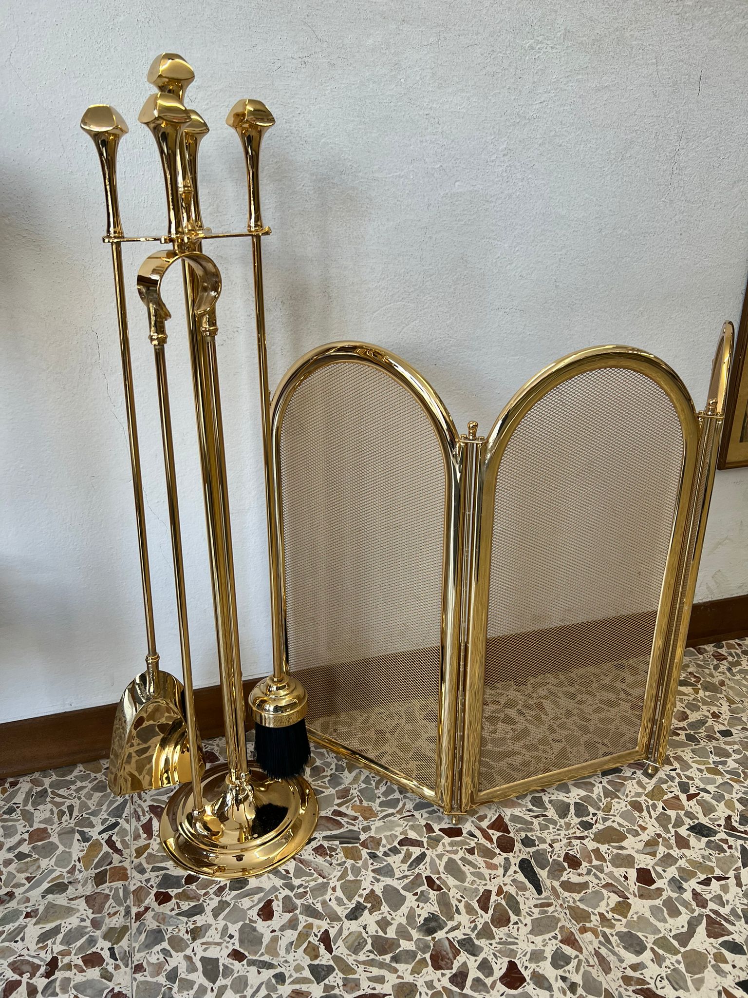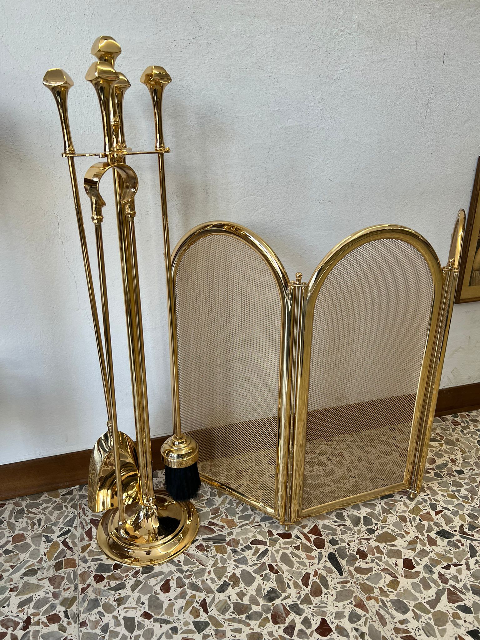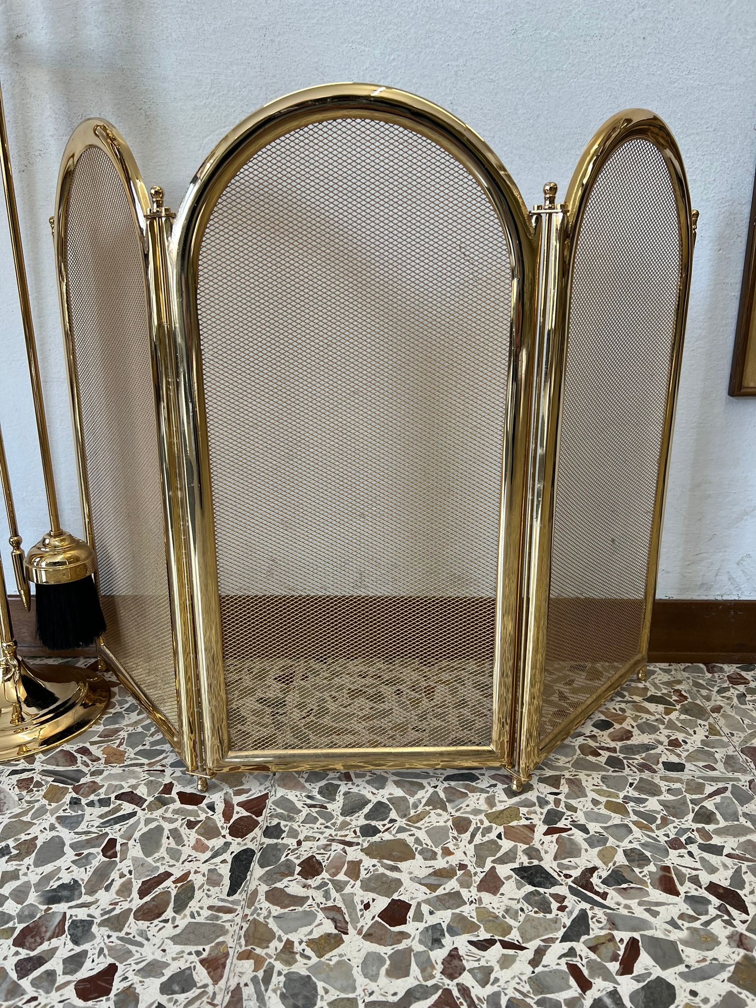 SET DA CAMINO CON PARASCINTILLE E ACCESSORI IN OTTONE