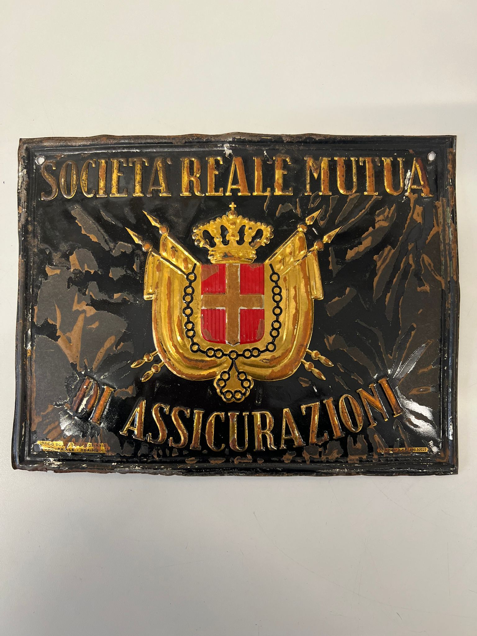 TARGA PUBBLICITARIA REALE MUTUA ASSCIURAZIONE SMALTATA