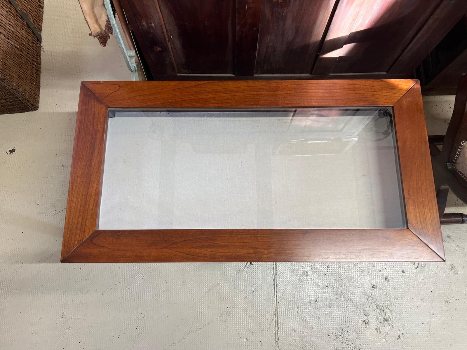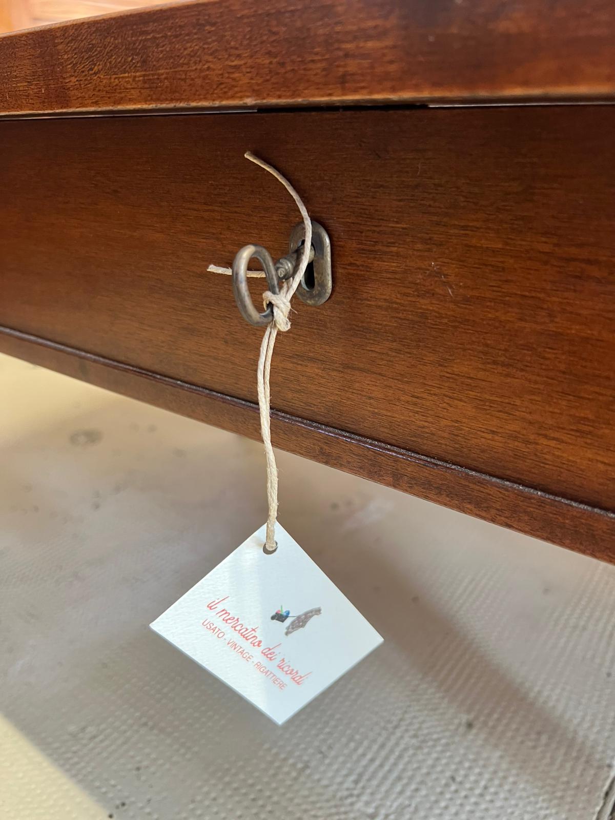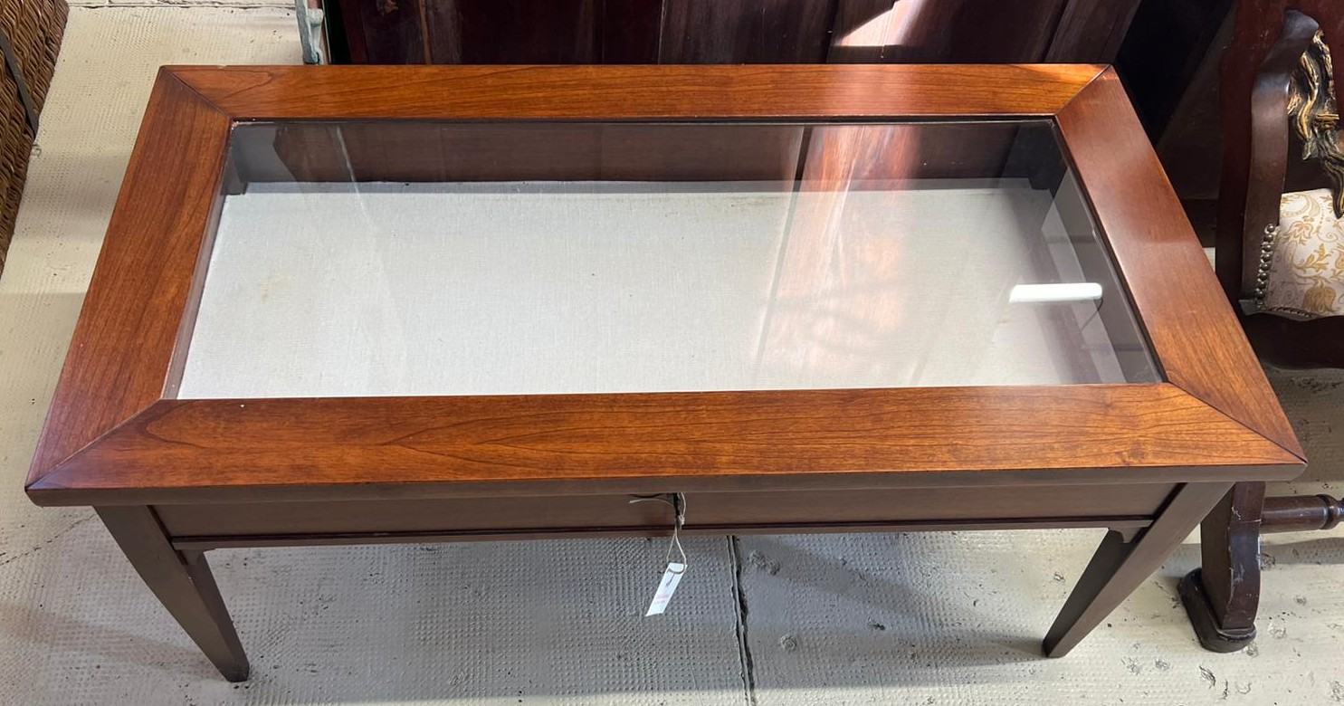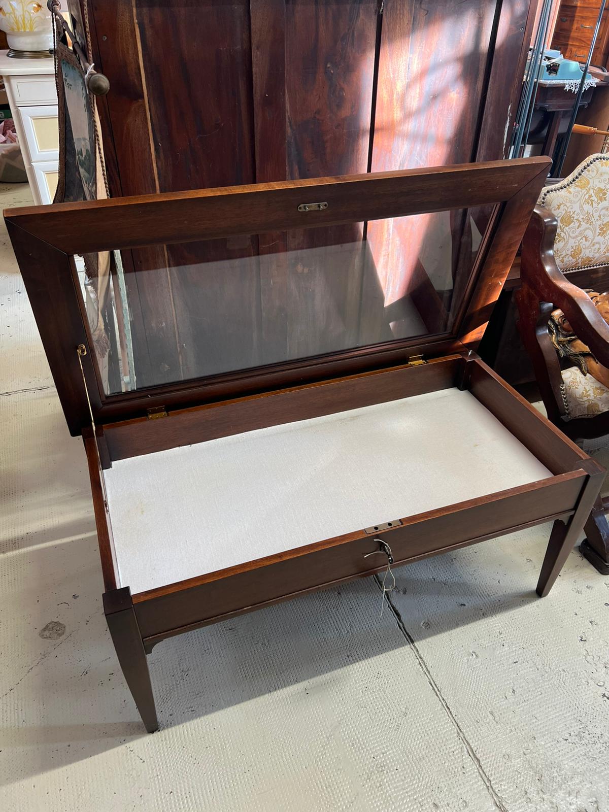 TAVOLINO IN LEGNO E VETRO CON TECA ESPOSITIVA E SERRATURA