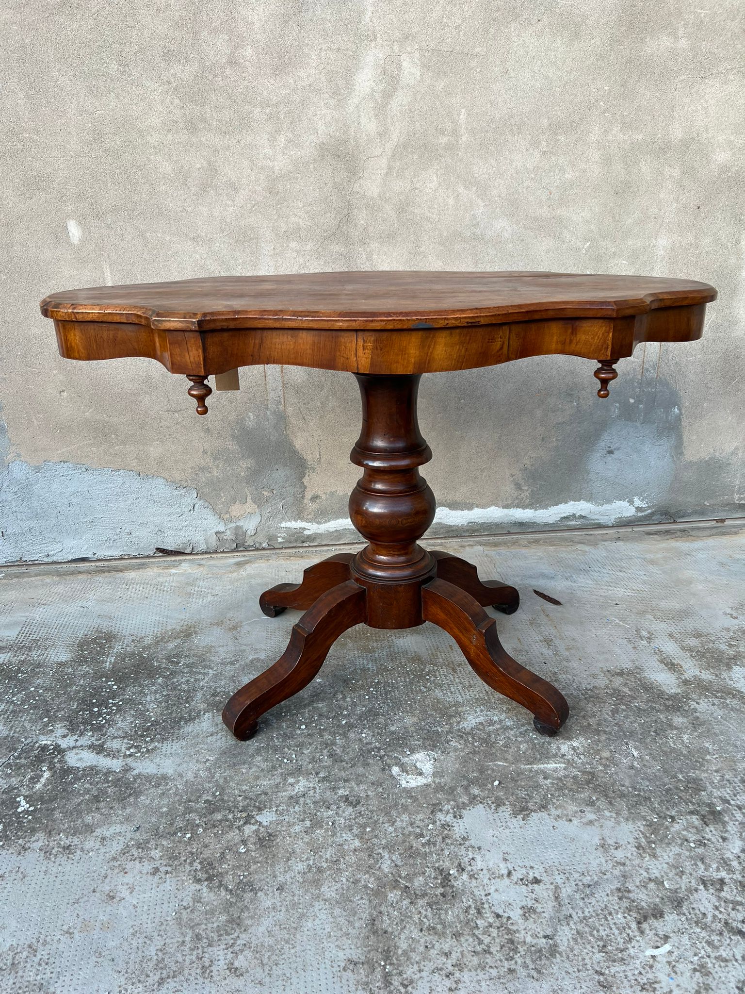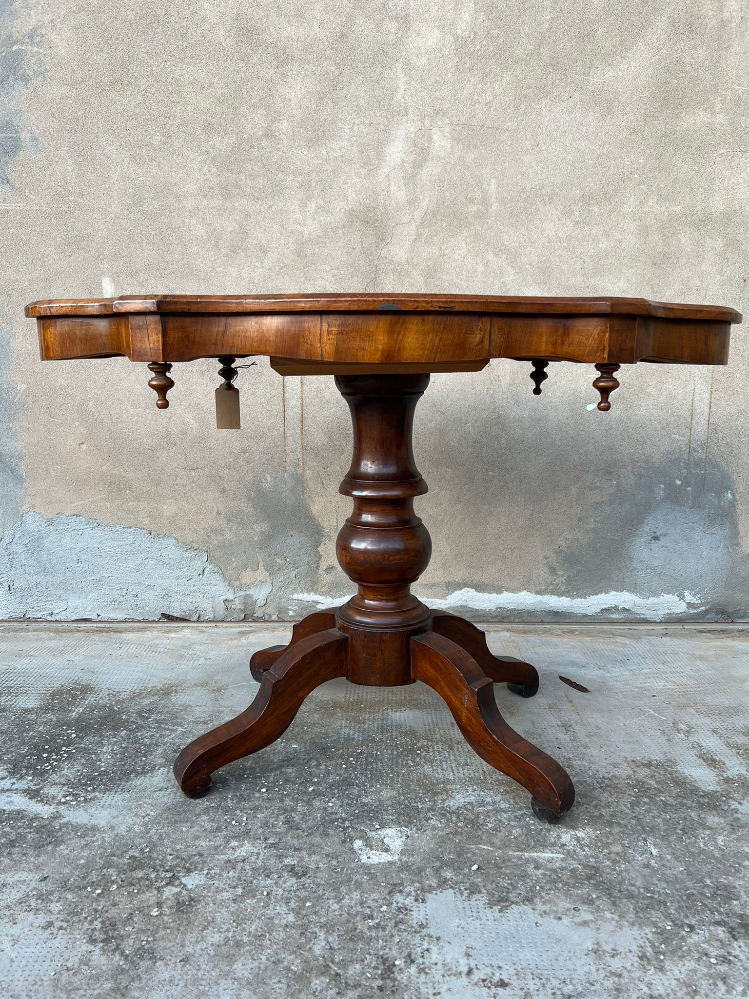TAVOLO OVALE ANTICO CON DECORAZIONE AI LATI