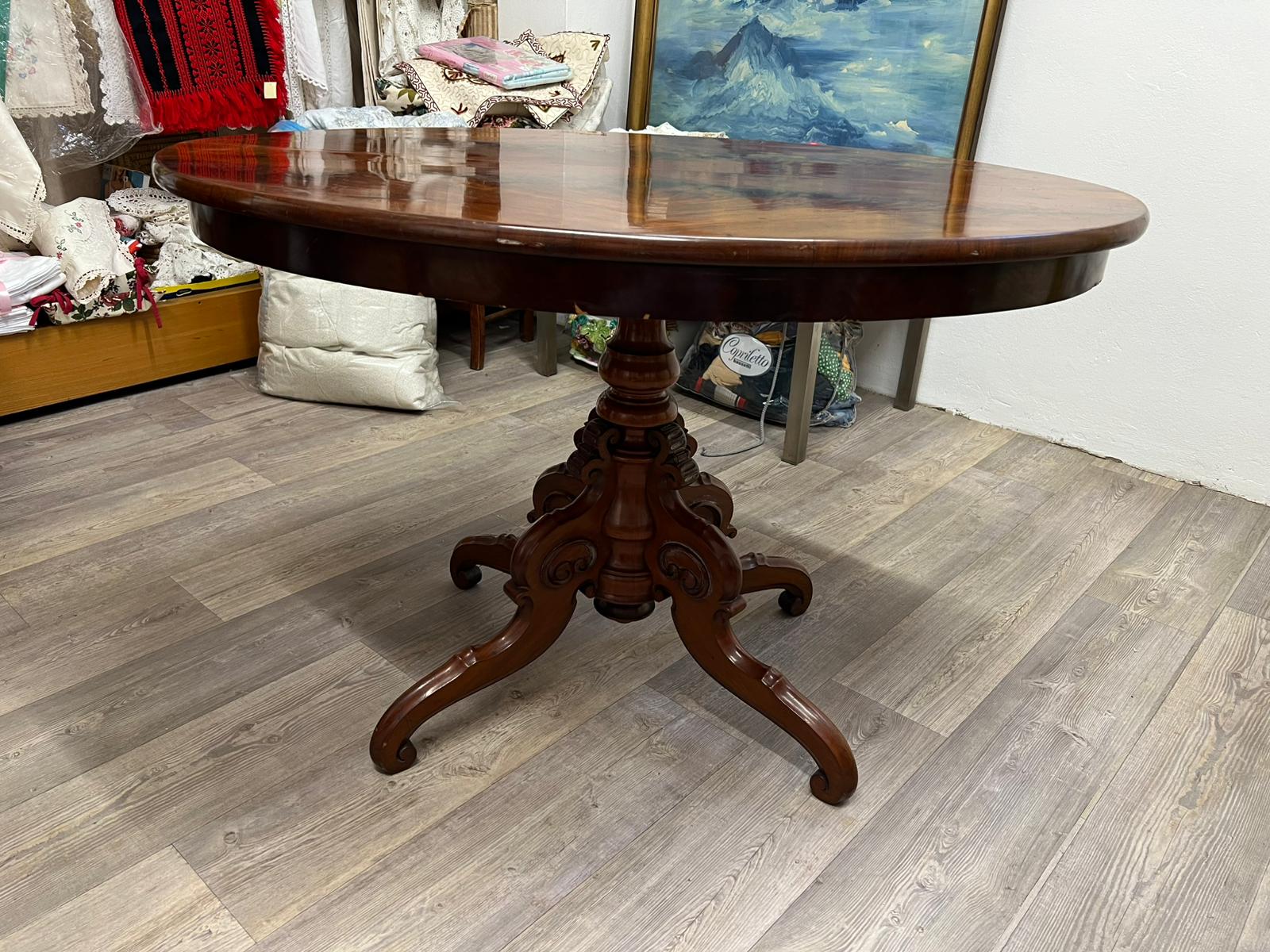 TAVOLO OVALE IN MOGANO LUCIDO