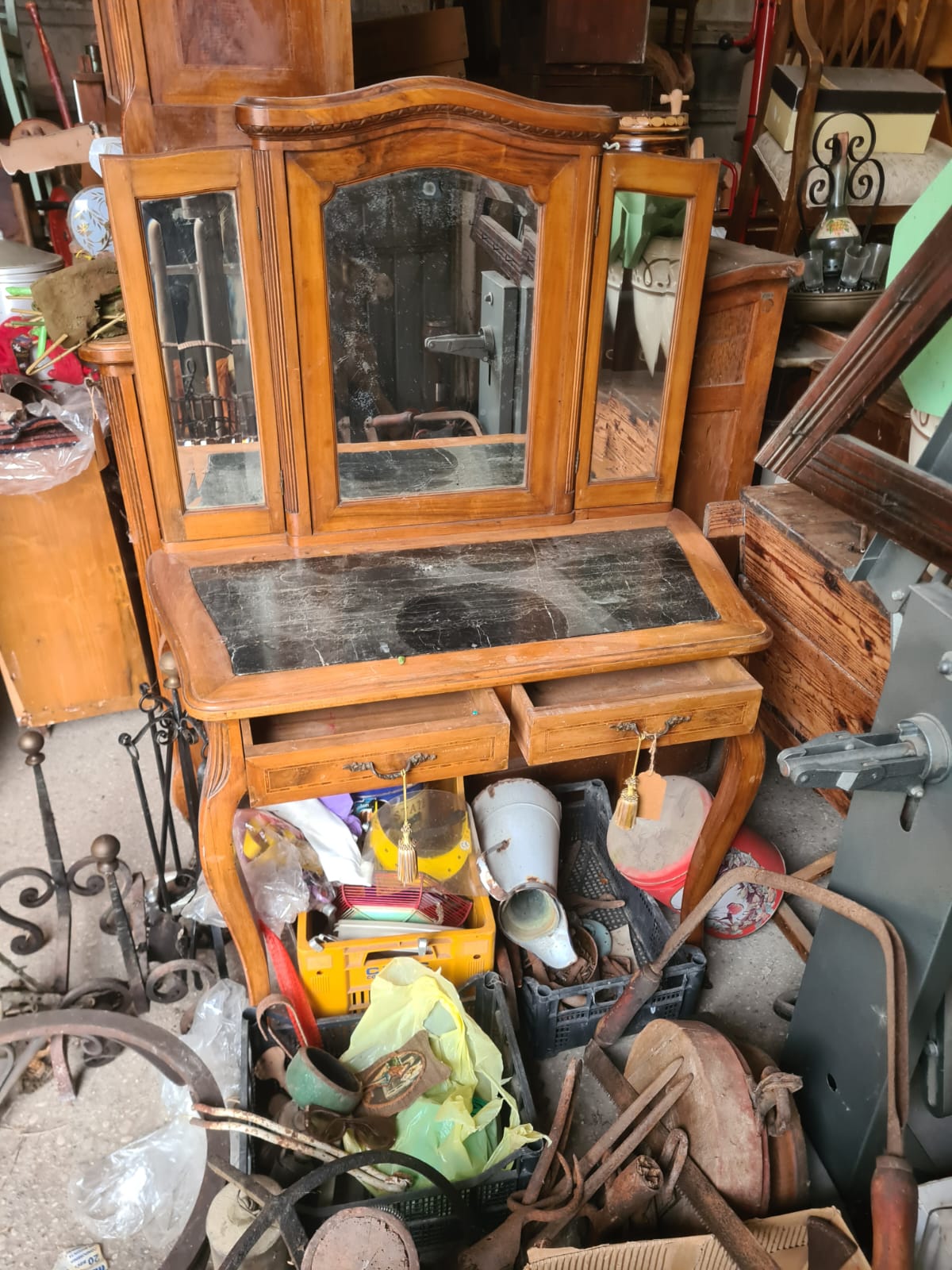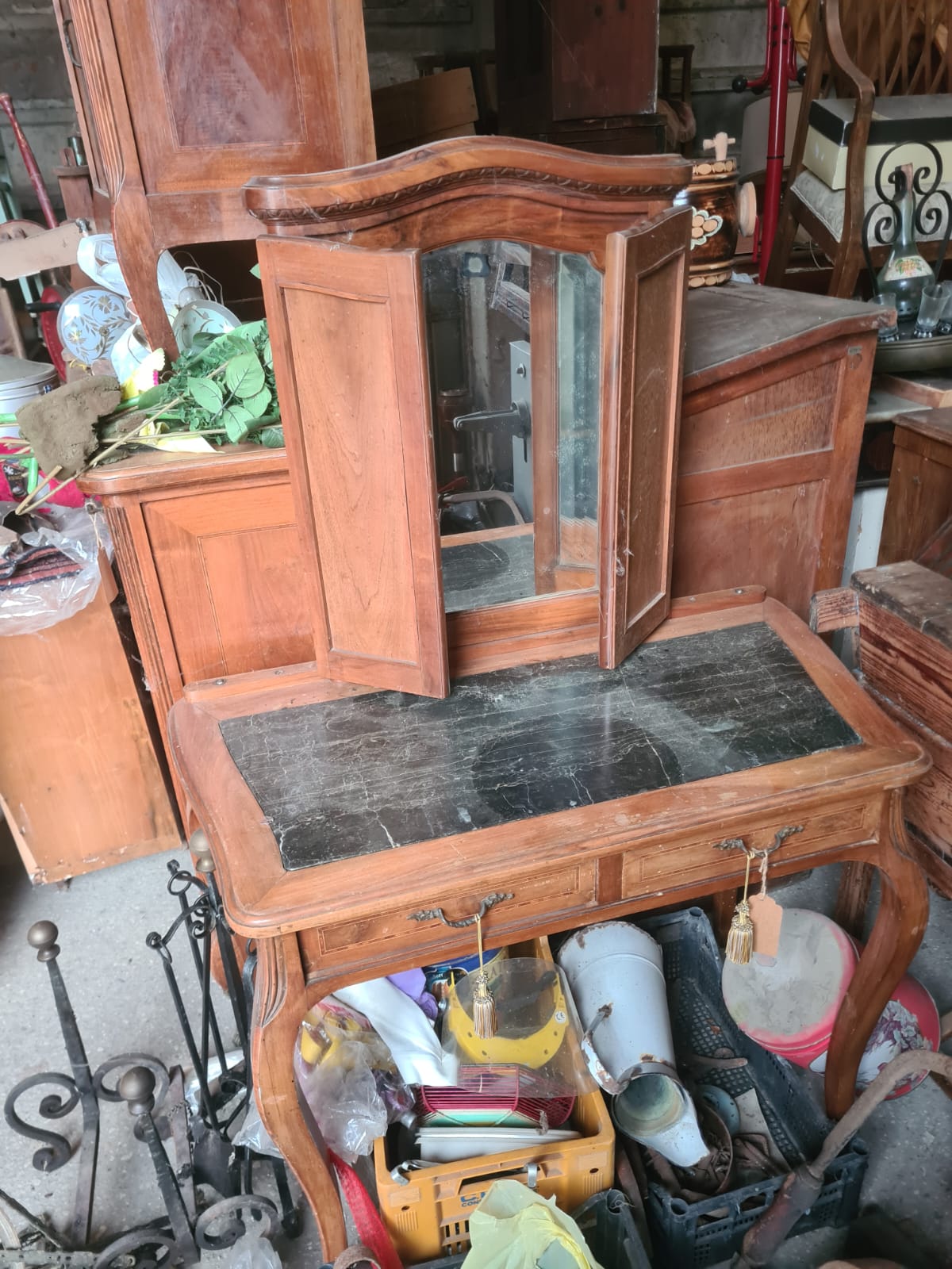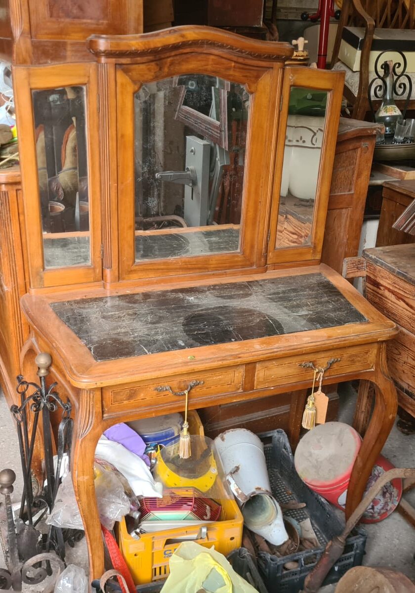 TOLETTE IN LEGNO CON SPECCHIO E RIPIANO IN MARMO NERO