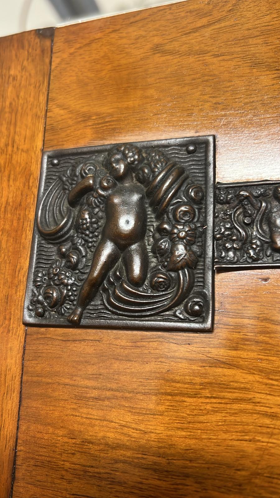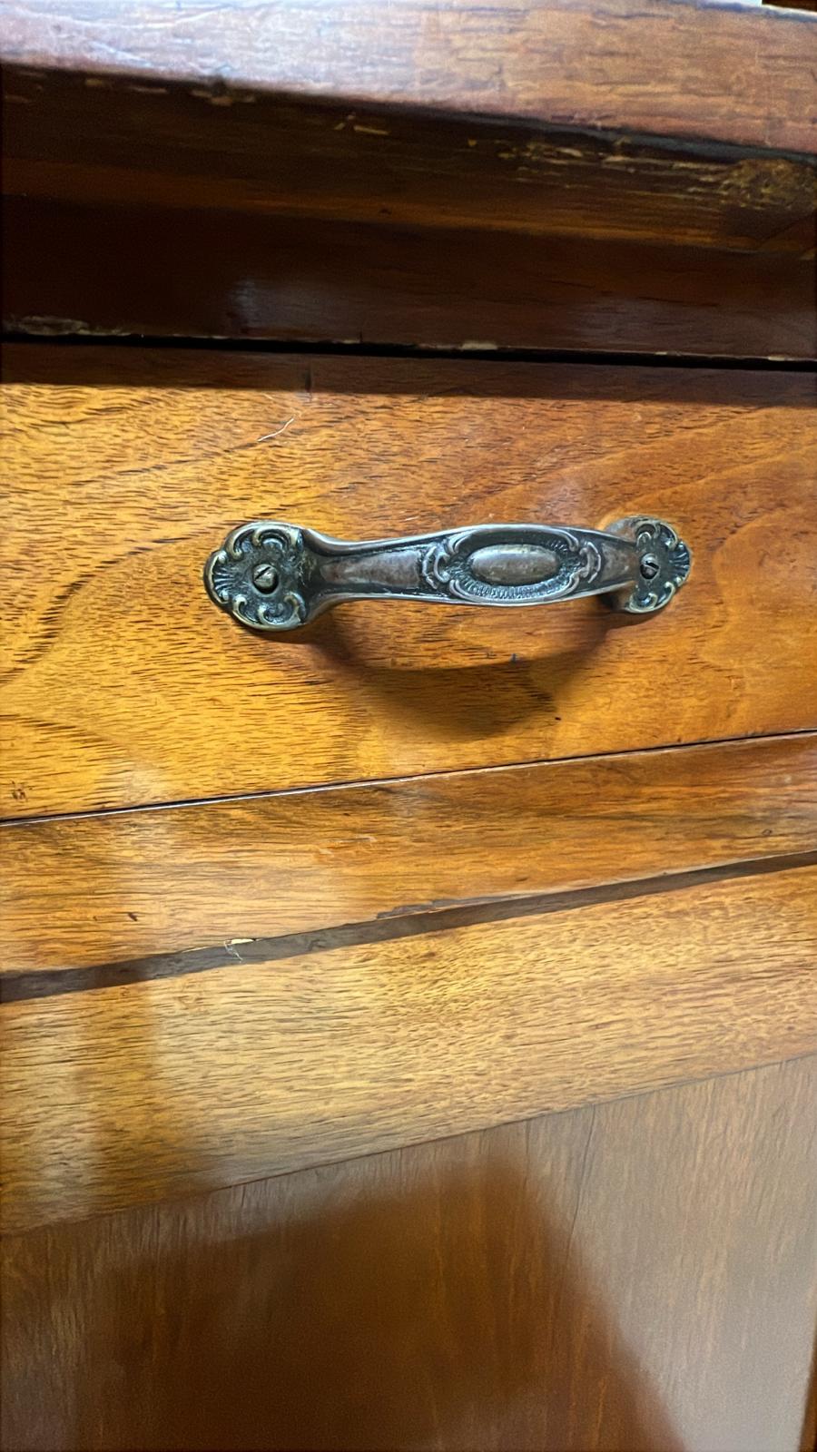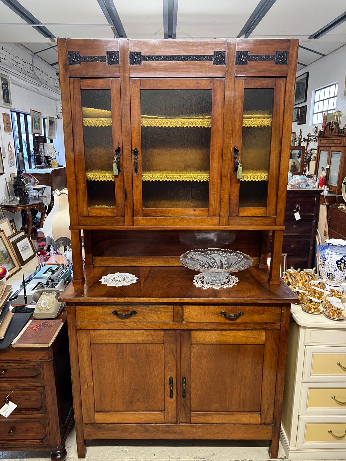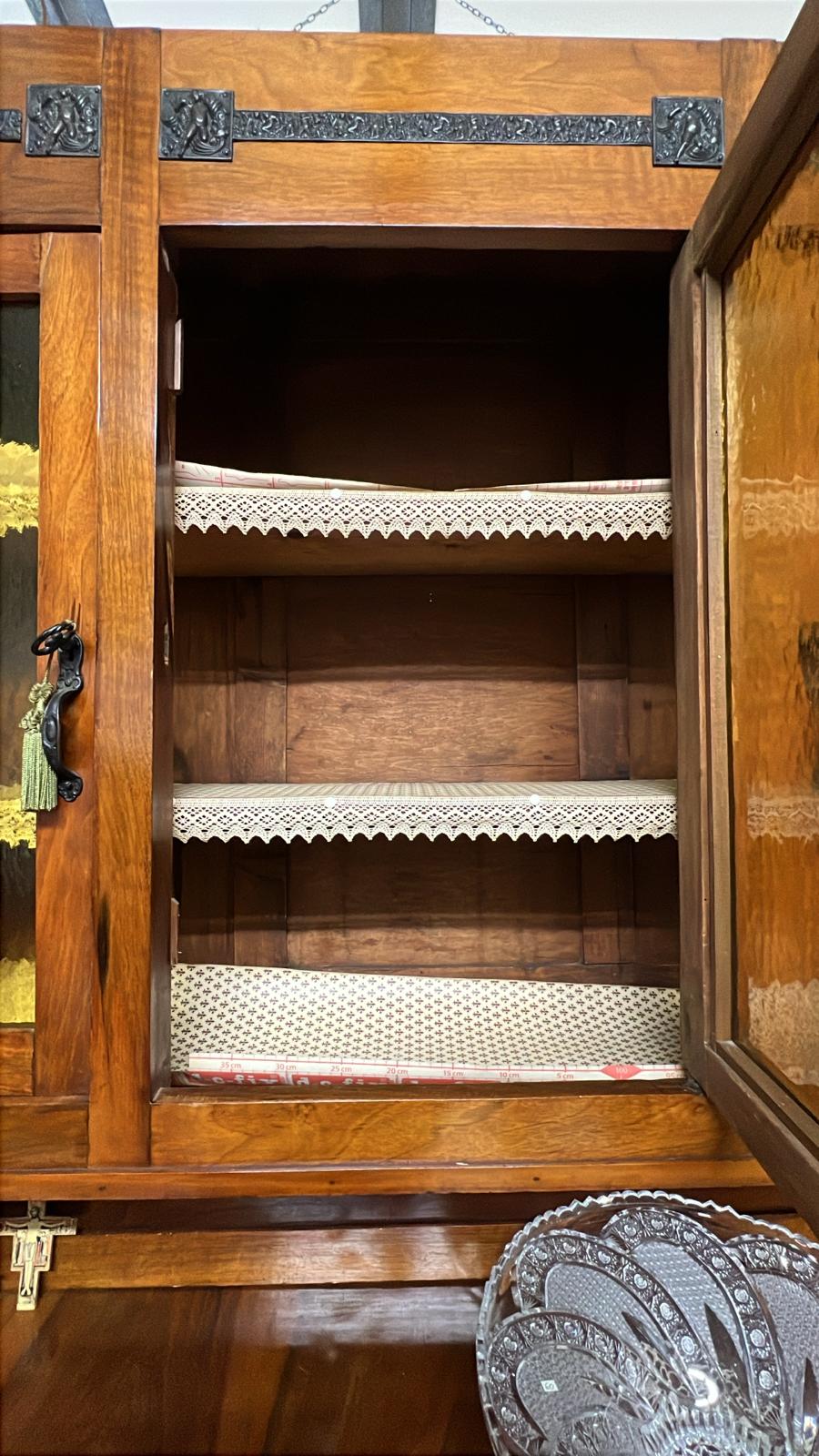 VETRINA / CREDENZA IN LEGNO CON DECORI E VETRI INIZI DEL ‘900