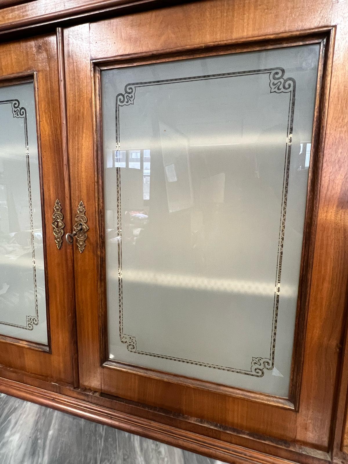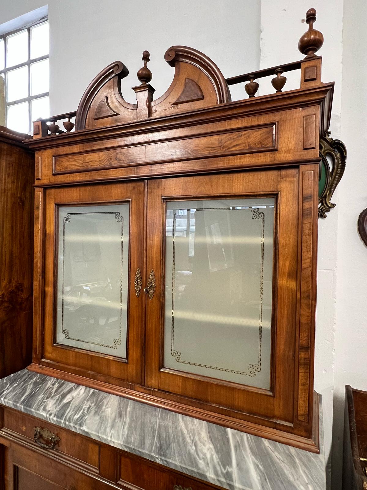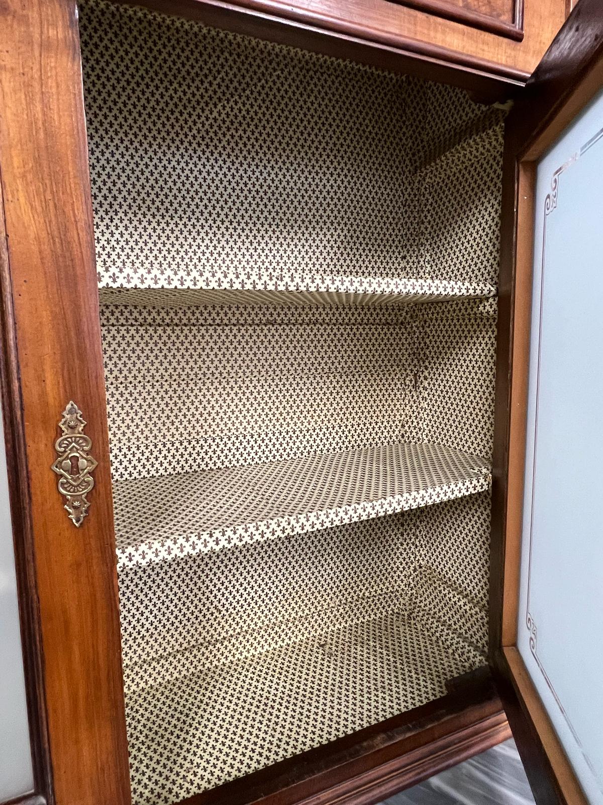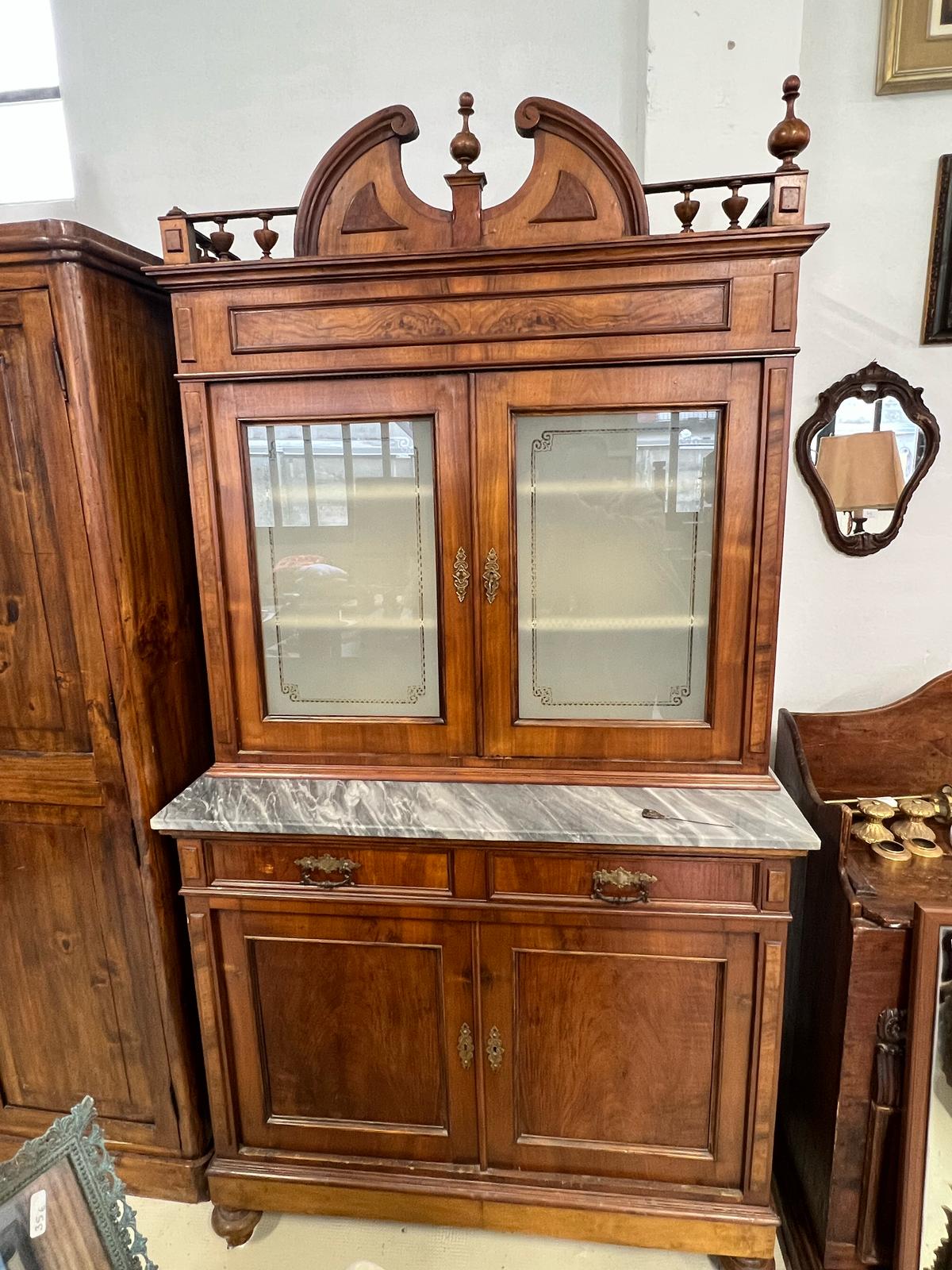 VETRINA IN LEGNO E VETRO CON RIPIANO IN MARMO.